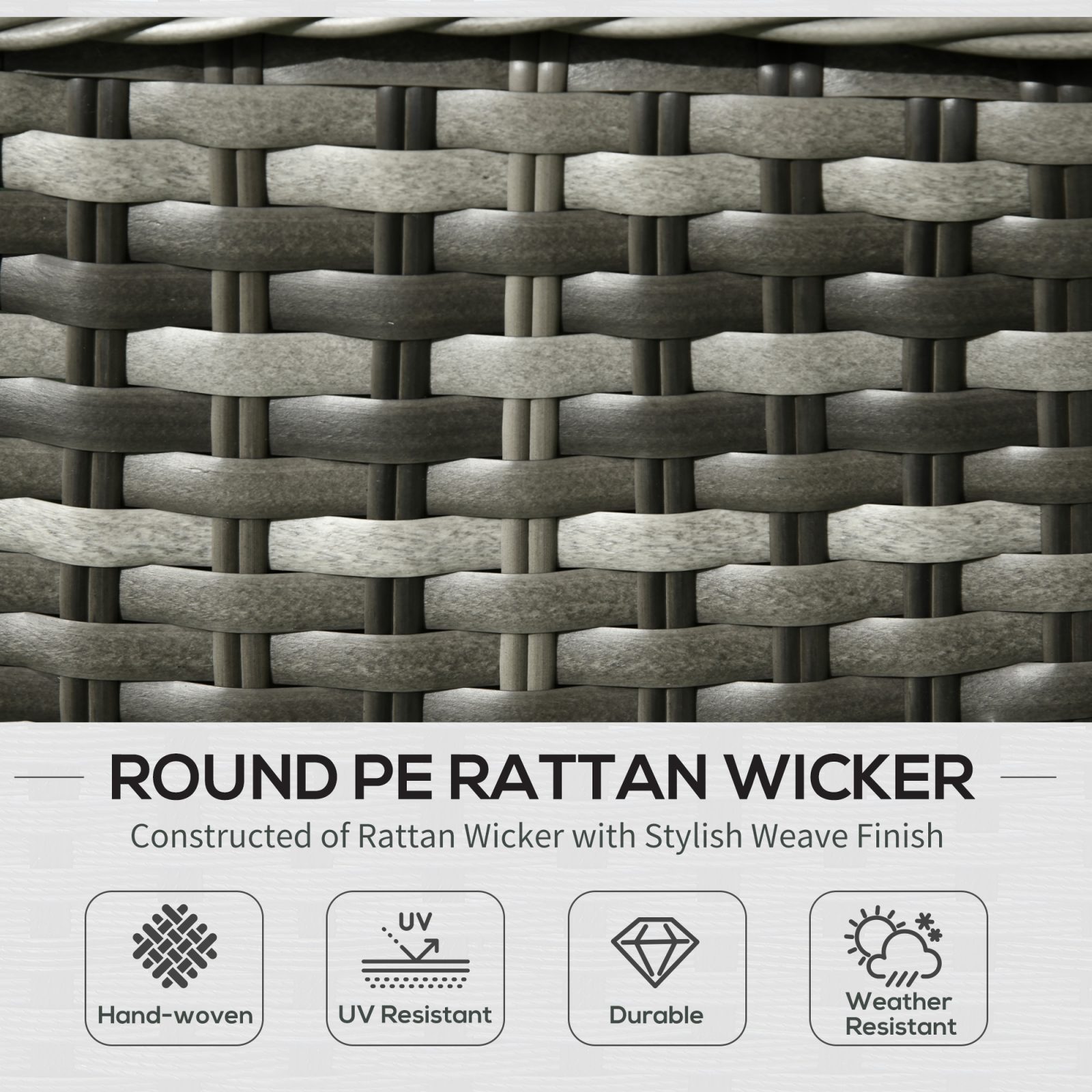 • Aluminium frame is solid and sturdy, wrapped in beautiful mixed-tone and weather-resistant PE rattan