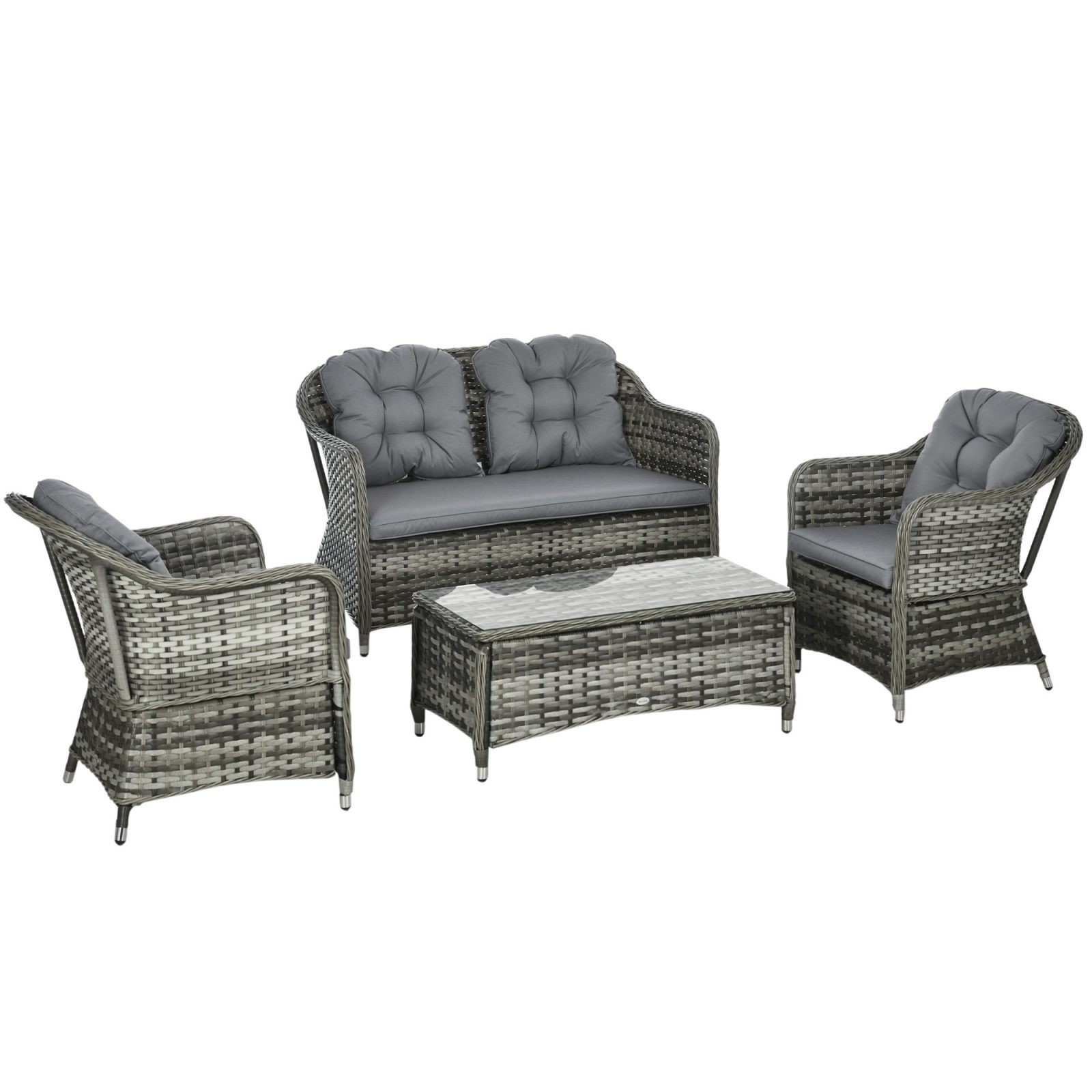Outsunny Conservatory 4 Piece Rattan Wicker Sofa Set – Grey