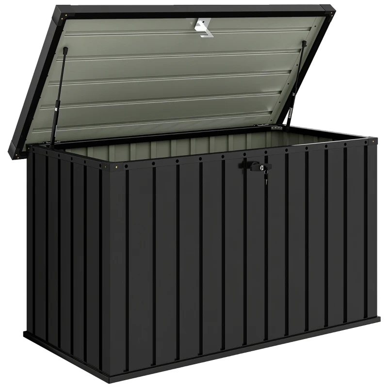 With a 400 L capacity, this Outsunny Galvanised Metal Garden 400 Litre Storage Box – Black is spacious enough for soft furnishings, garden accessories and more.
