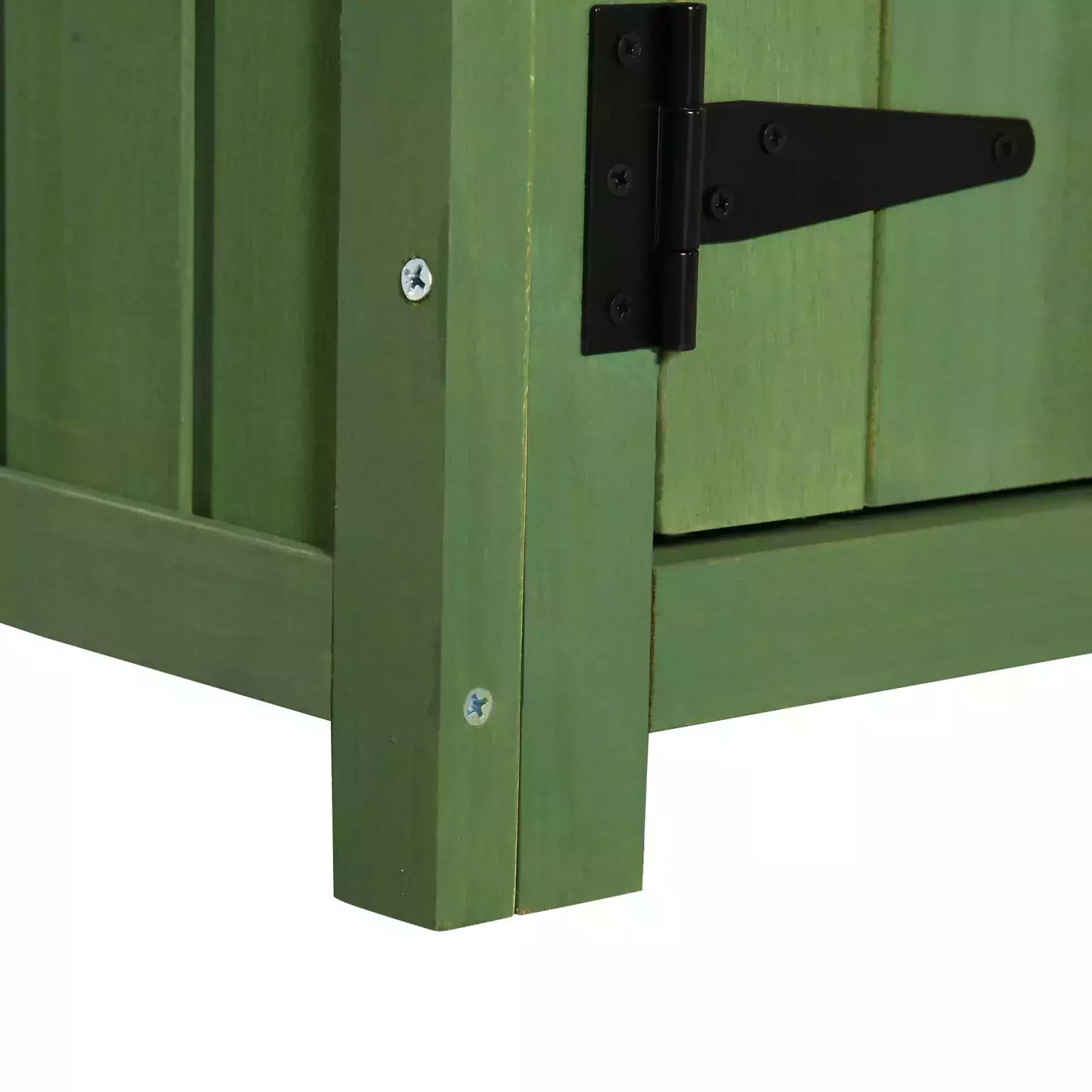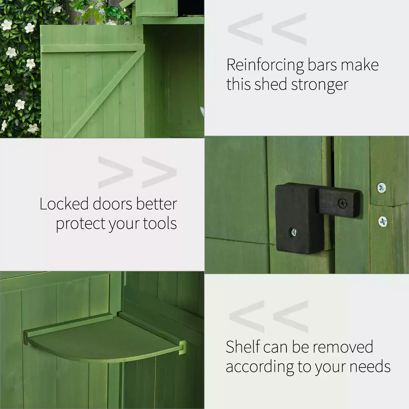 The Outsunny Timber Garden Storage Shed 3 Shelves Tool House- Dark Green is an ideal solution for organizing all your garden tools and equipment.