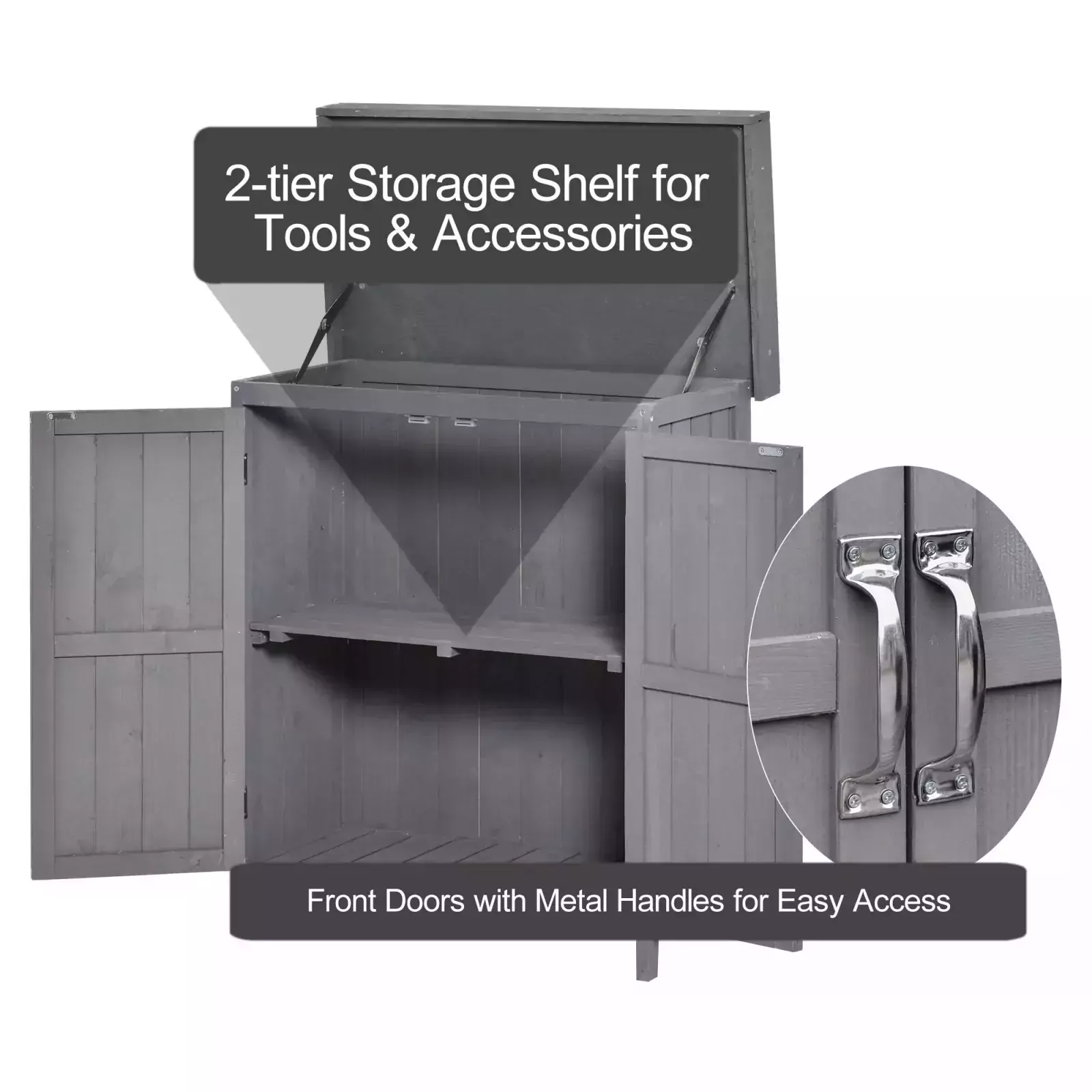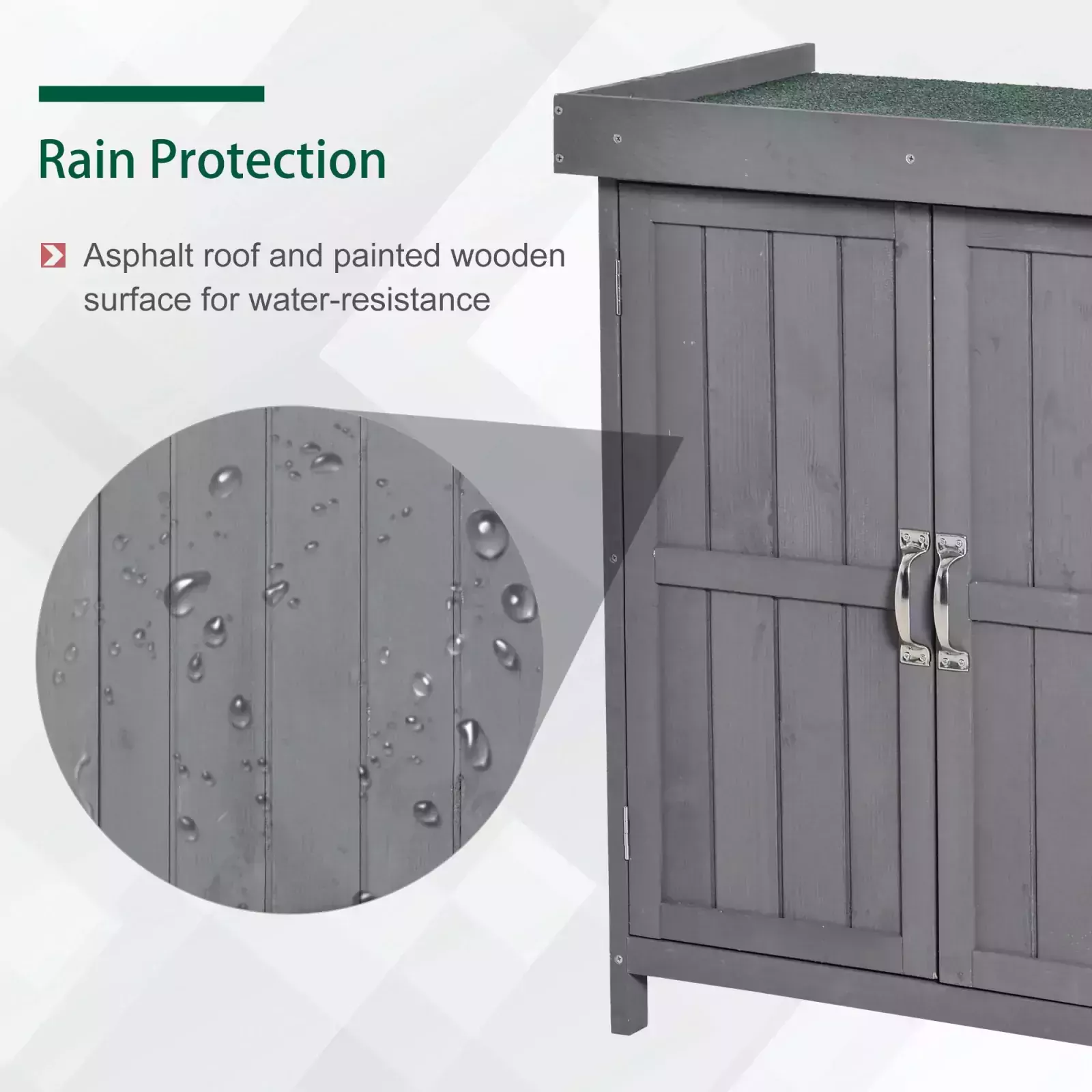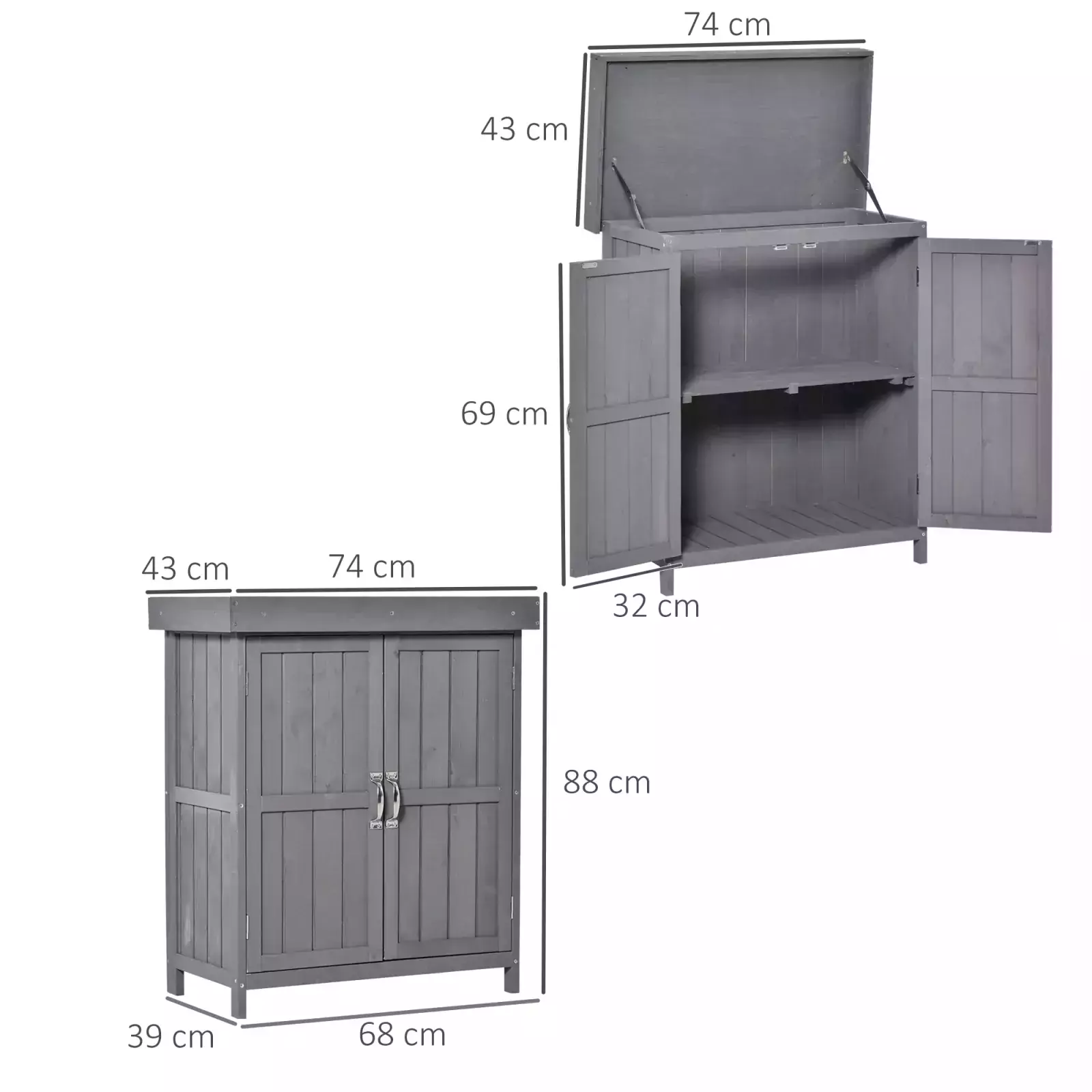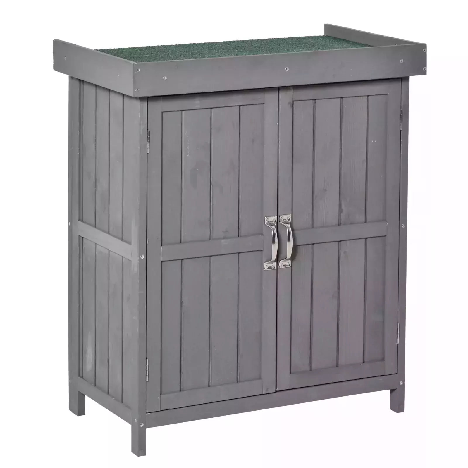 This Outsunny Timber Outdoor Garden Cabinet – Grey with 2-tier shelf is an ideal storage solution for storing various tools and garden accessories.