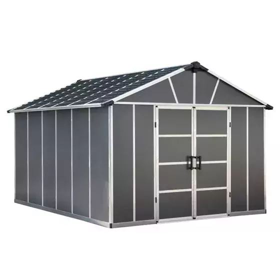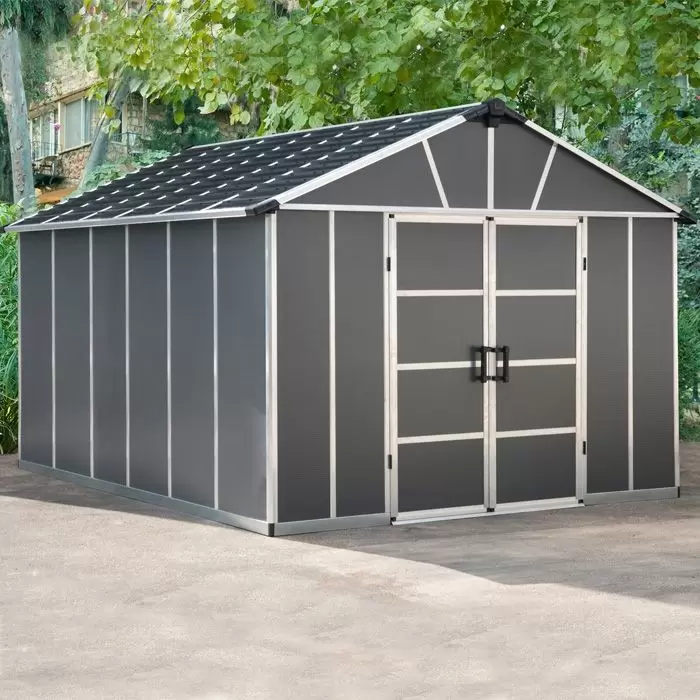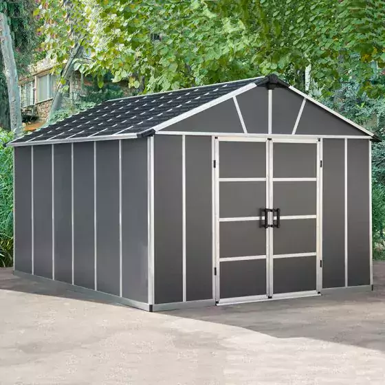 The Palram 11×13 Canopia Yukon Plastic Shed – Dark Grey is a great garden building for storing your tools, machine and garden accessories.
