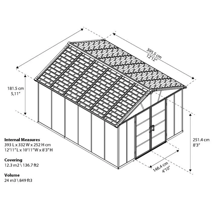 Expertly constructed using high-specification materials and with a 15-year warranty, this market-leading 11×13 plastic shed offers unbeatably robust and durable garden storage for your tools and outdoor equipment.