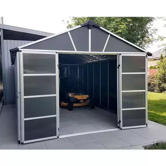 The Palram 11×17 Canopia Yukon Plastic Shed – Dark Grey with Anti Slip WPC Floor is a great garden building for storing your tools, machine and garden accessories.