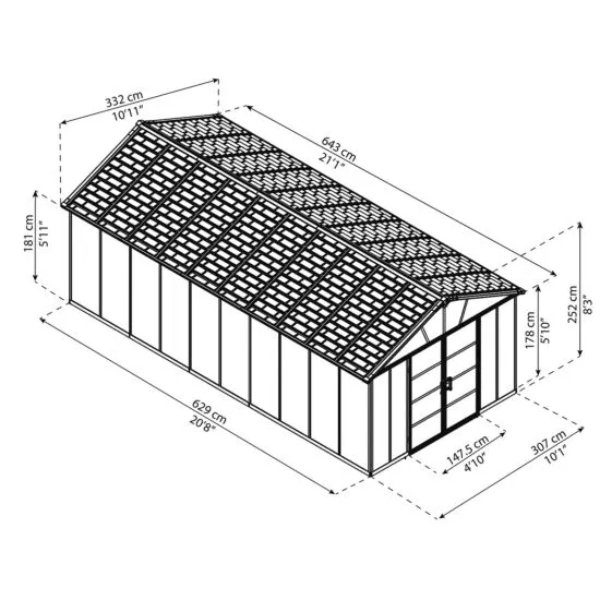 The Palram 11×21 Canopia Yukon Plastic Shed – Dark Grey with Anti Slip WPC Floor  is a great garden building for storing your tools, machine and garden accessories.