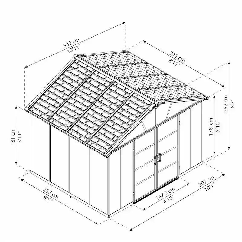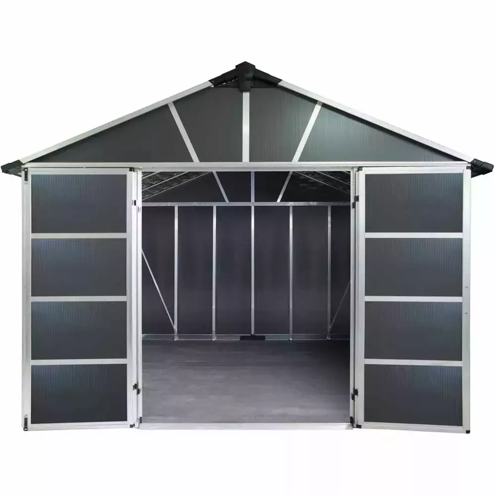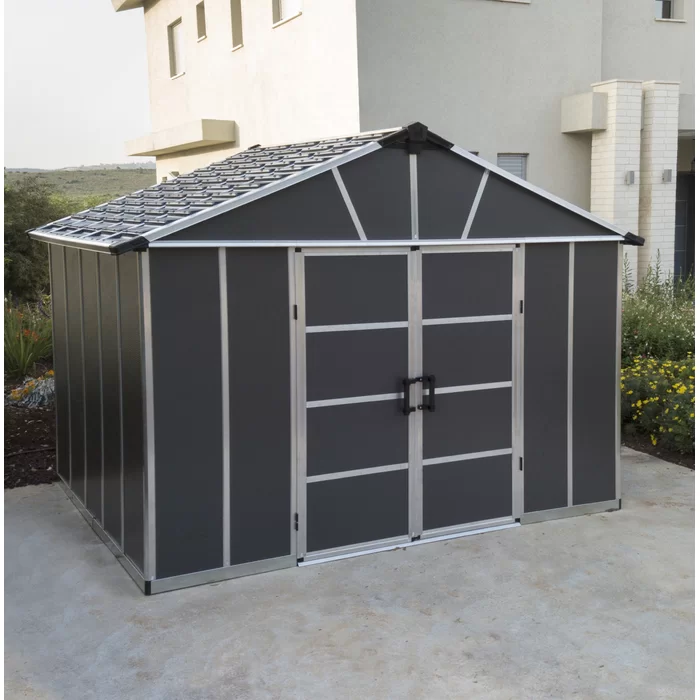 The Palram 11×9 Canopia Yukon Plastic Shed – Dark Grey is a great garden building for storing your tools, machine and garden accessories.