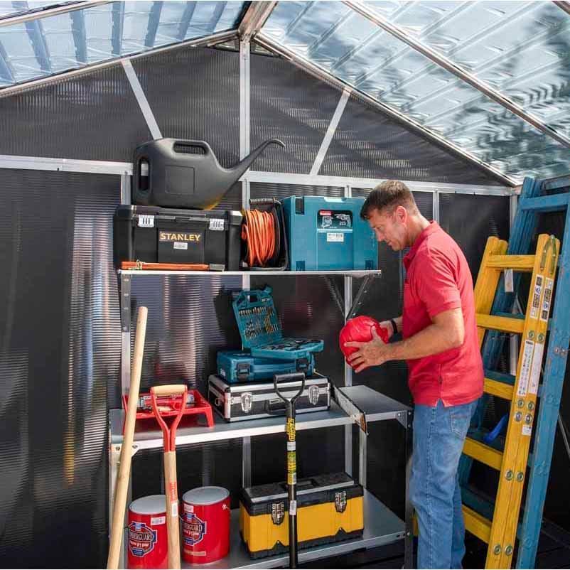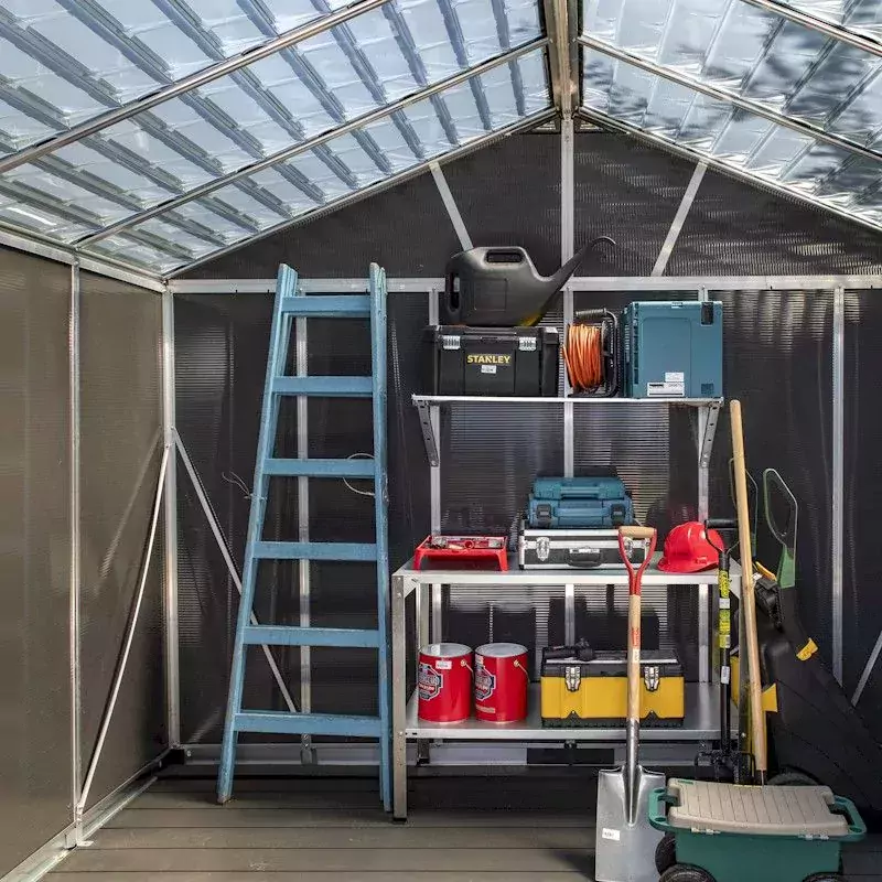 Built with ultra-resilient polycarbonate panels, this shed is designed for multi-functionality and years of superior protection. The panels are long-lasting and durable and are resistant against fracturing, discolouration or becoming brittle over time.