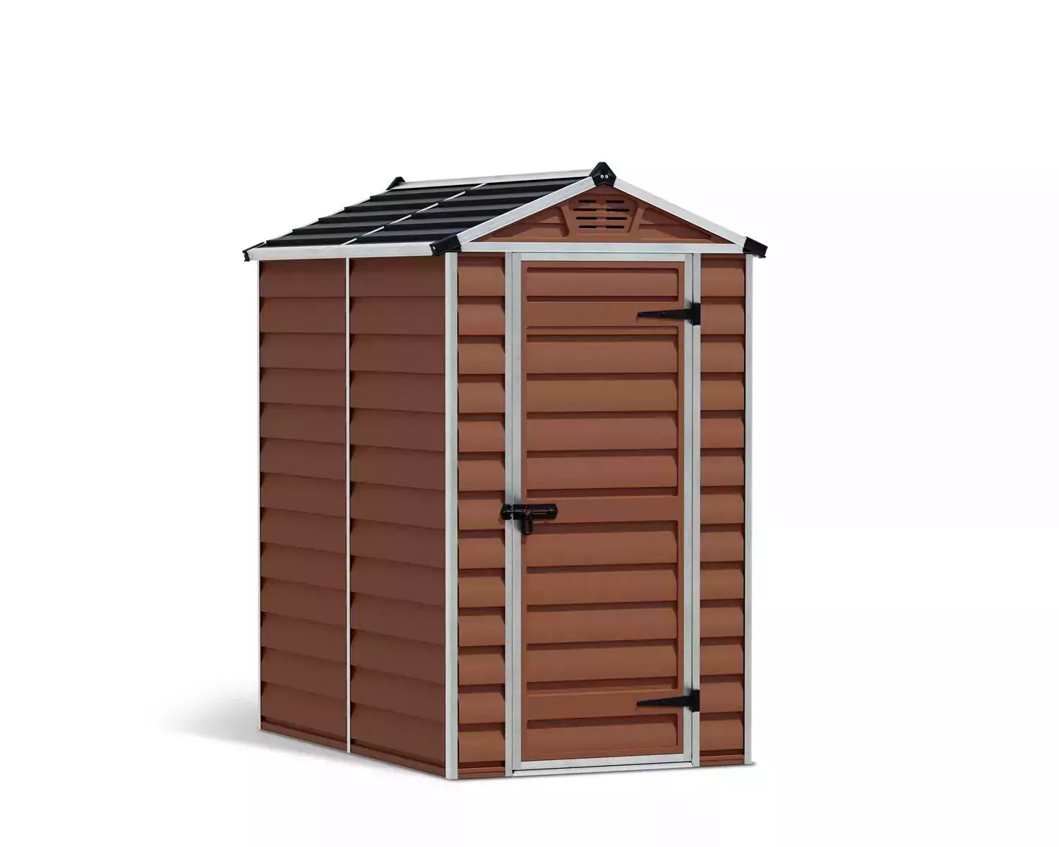 The Skylight garden storage shed is made with a reinforced aluminium frame and flexible polycarbonate panels specially engineered to withstand the expansion and shrinkage associated with weather changes. The panels do not bend, fracture, or discolour over time, giving your things maintenance-free protection for years to come. The unique Skylight roof panels transmit natural sunlight during the day while giving you opaque external visibility for maximum privacy as well as front and back vents for ample airflow. Designed with your outdoor living needs in mind, the Skylight plastic shed will complement your home, enhance your outdoor living space, and organize and protect your things.