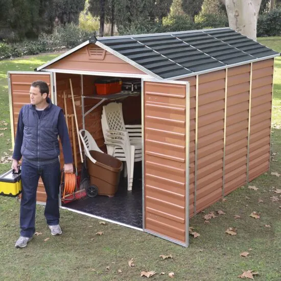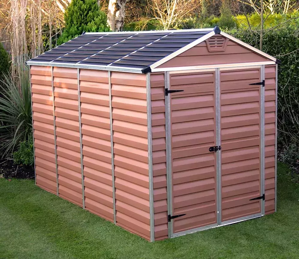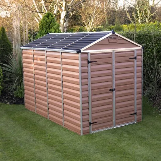 Update your garden with the addition of the Palram 6×10 Canopia Skylight Plastic Apex Shed – Amber , a stylish heavy duty addition that allows you to safely store a range of equipment including lawn tools, sports equipment, patio furniture and more.