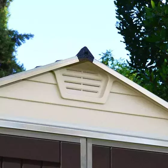 The unique skylight roof shingles of the polycarbonate roof transmit plenty of natural light – while still appearing opaque from the outside – making working in your garden shed more pleasant. Air vents also ensure better working and storage conditions.