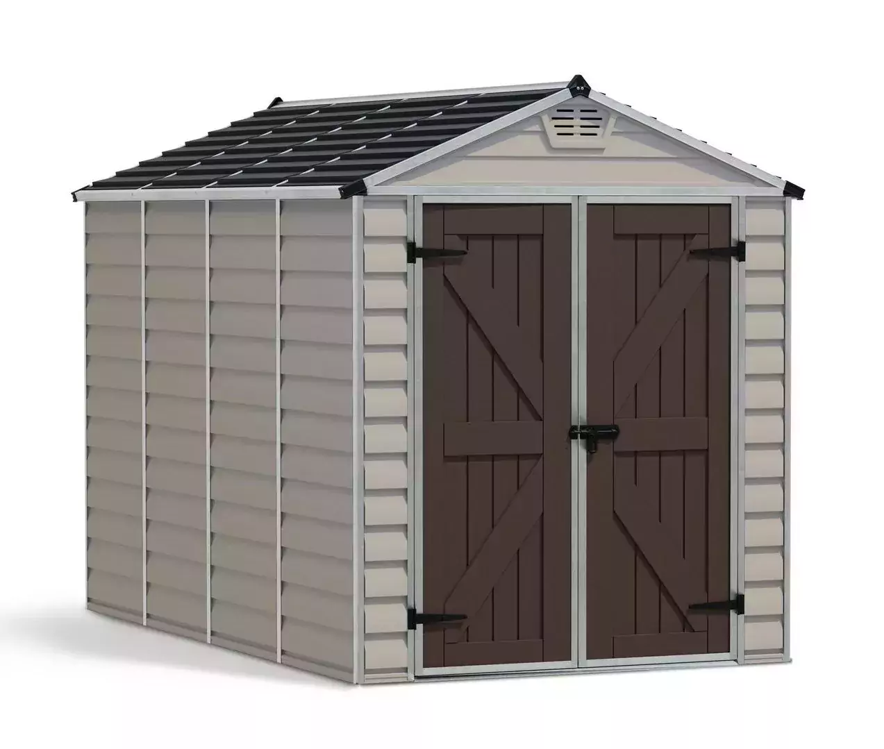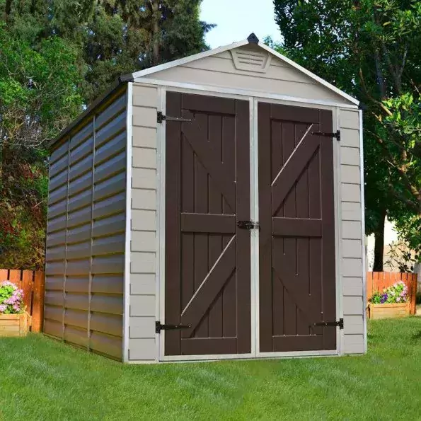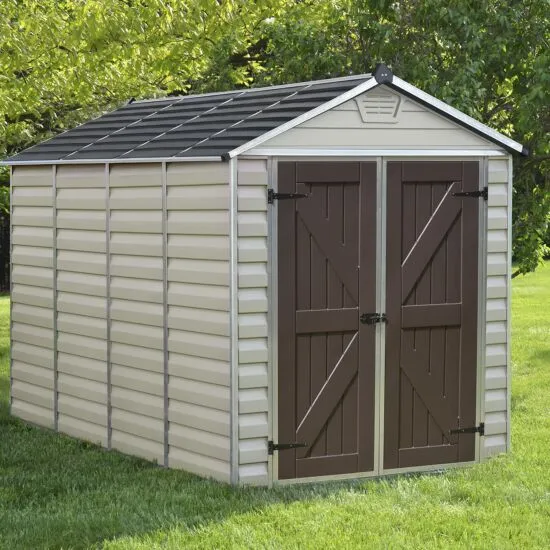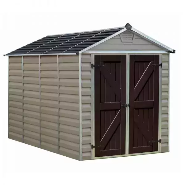 Update your garden with the addition of the Palram 6×10 Canopia Skylight Plastic Apex Shed – Tan , a stylish heavy duty addition that allows you to safely store a range of equipment including lawn tools, sports equipment, patio furniture and more.