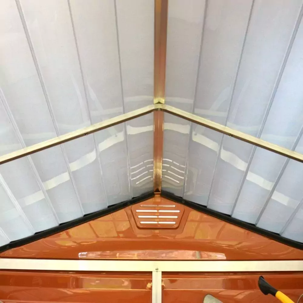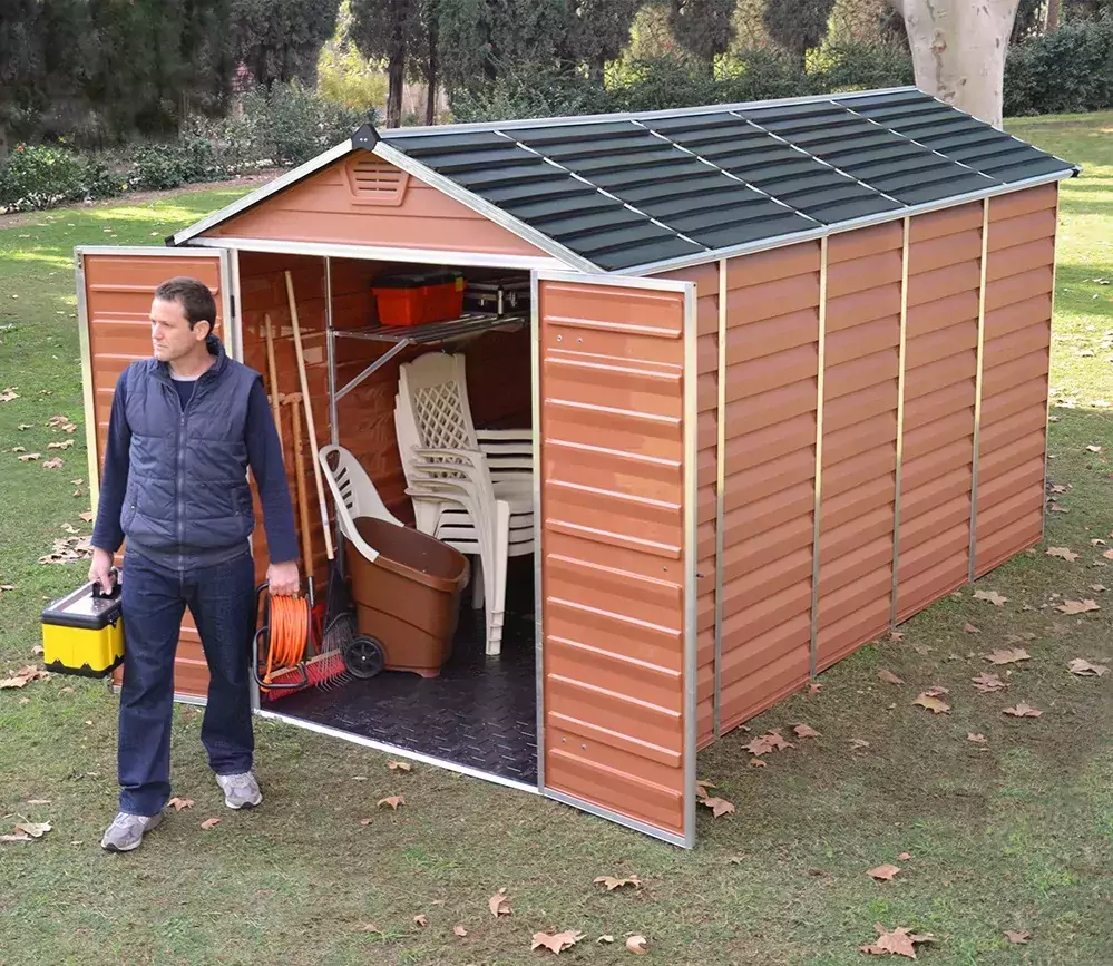 The Skylight garden storage shed is made with a reinforced aluminium frame and flexible polycarbonate panels specially engineered to withstand the expansion and shrinkage associated with weather changes. The panels do not bend, fracture, or discolour over time, giving your things maintenance-free protection for years to come. The unique Skylight roof panels transmit natural sunlight during the day while giving you opaque external visibility for maximum privacy as well as front and back vents for ample airflow. Designed with your outdoor living needs in mind, the Skylight plastic shed will complement your home, enhance your outdoor living space, and organize and protect your things.
