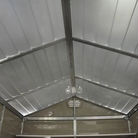 The Skylight garden storage shed is made with a reinforced aluminium frame and flexible polycarbonate panels specially engineered to withstand the expansion and shrinkage associated with weather changes. The panels do not bend, fracture, or discolour over time, giving your things maintenance-free protection for years to come. The unique Skylight roof panels transmit natural sunlight during the day while giving you opaque external visibility for maximum privacy as well as front and back vents for ample airflow. Designed with your outdoor living needs in mind, the Skylight plastic shed will complement your home, enhance your outdoor living space, and organize and protect your things.