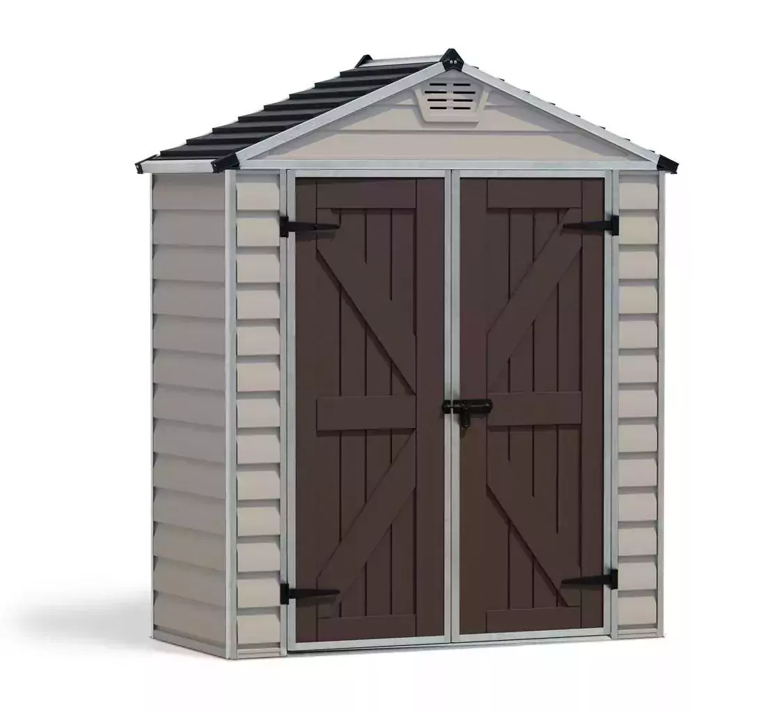 Update your garden with the addition of the Palram 6×3 Canopia Skylight Plastic Apex Shed – Tan, a stylish heavy duty addition that allows you to safely store a range of equipment including lawn tools, sports equipment, patio furniture and more.