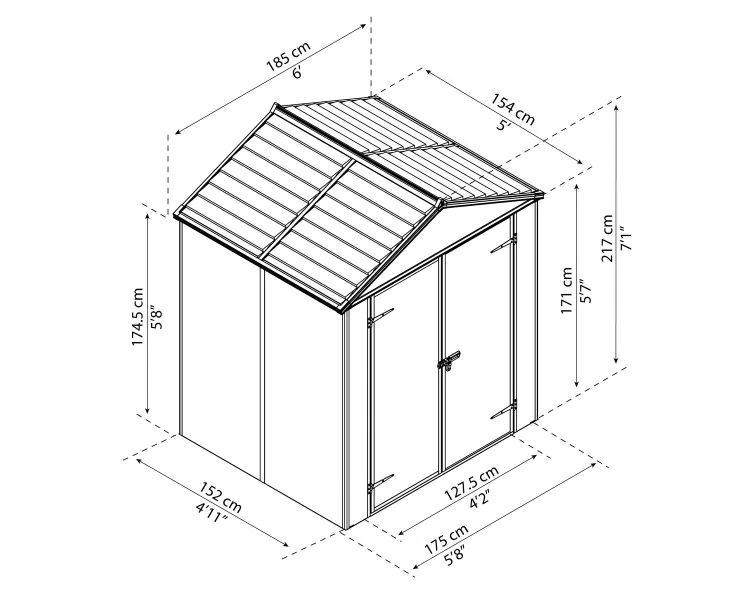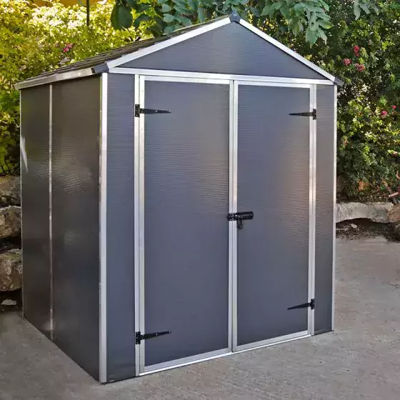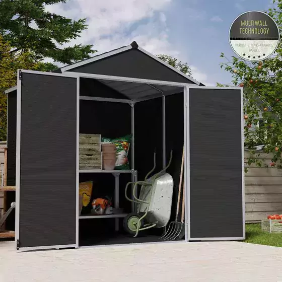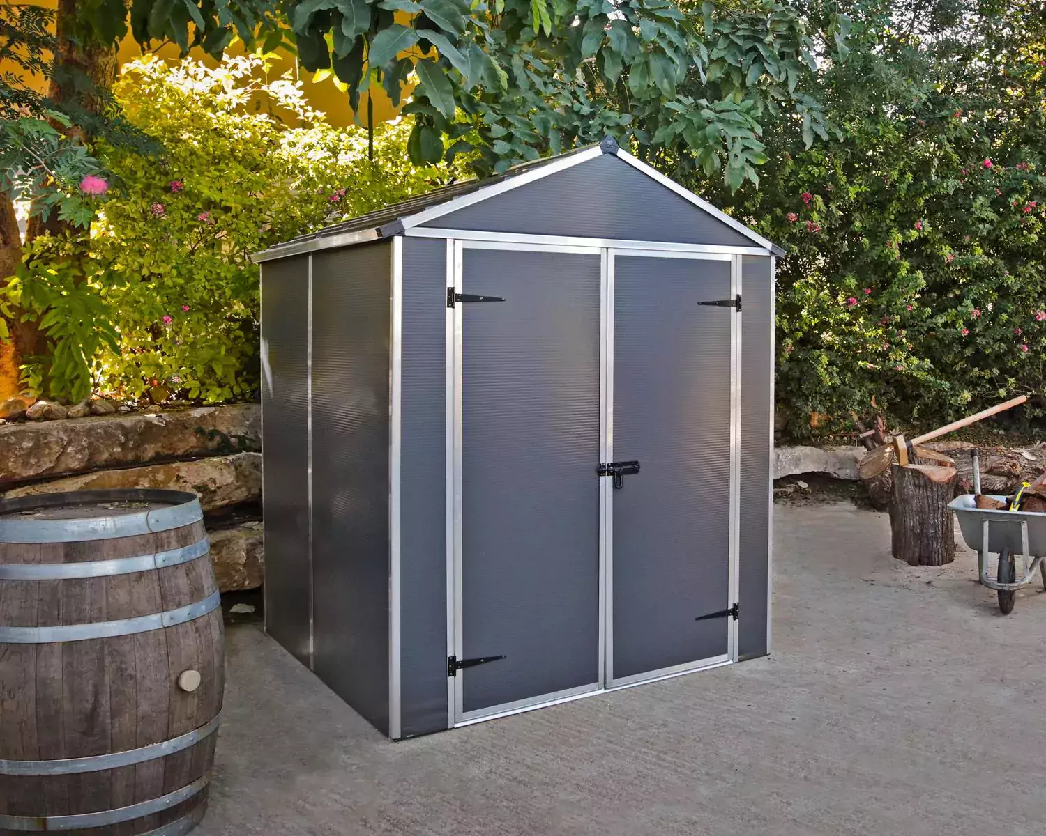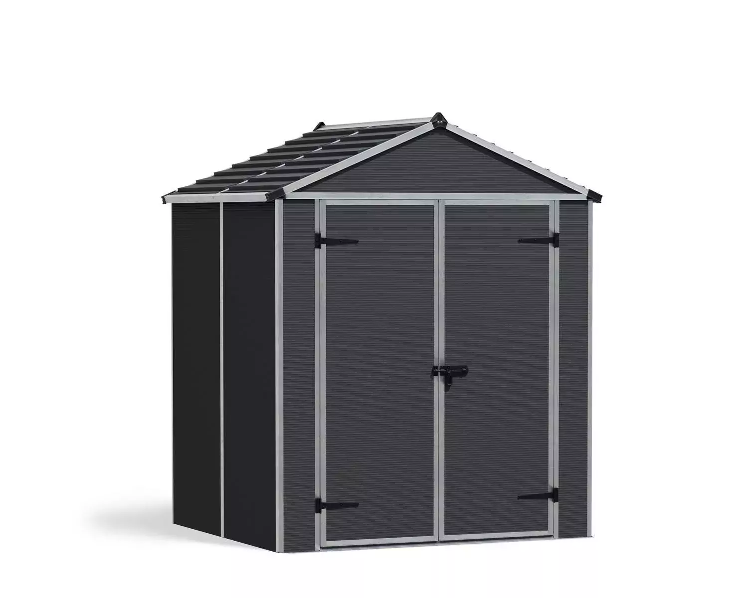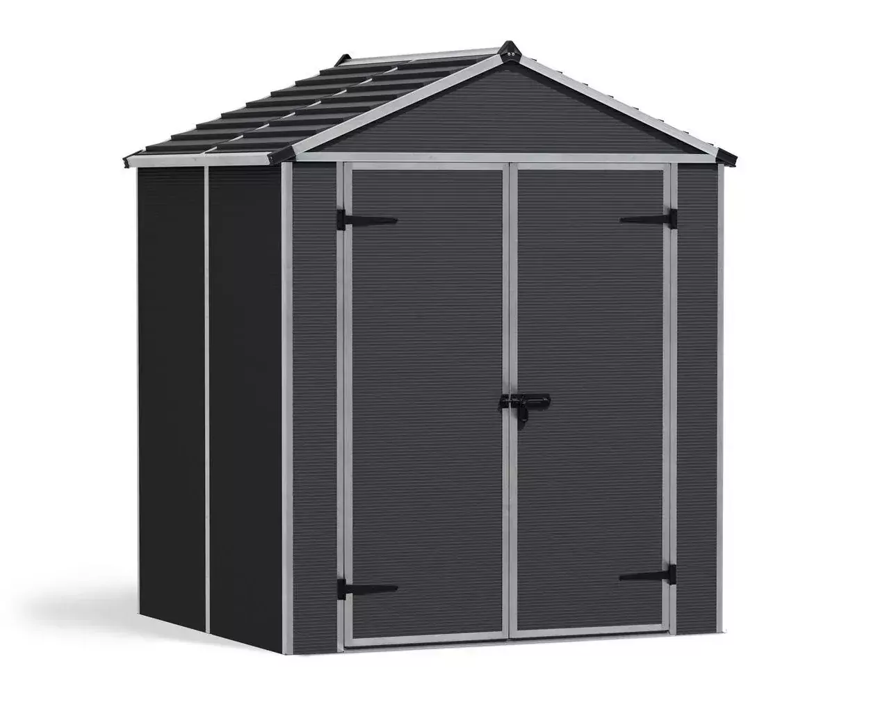 The Palram 6×5 Canopia Rubicon Double Door Plastic Shed – Dark Grey provides unbeatable weatherproof protection for your tools and equipment.