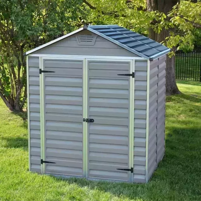 The Skylight garden storage shed is made with a reinforced aluminium frame and flexible polycarbonate panels specially engineered to withstand the expansion and shrinkage associated with weather changes. The panels do not bend, fracture, or discolour over time, giving your things maintenance-free protection for years to come. The unique Skylight roof panels transmit natural sunlight during the day while giving you opaque external visibility for maximum privacy as well as front and back vents for ample airflow. Designed with your outdoor living needs in mind, the Skylight plastic shed will complement your home, enhance your outdoor living space, and organize and protect your things.