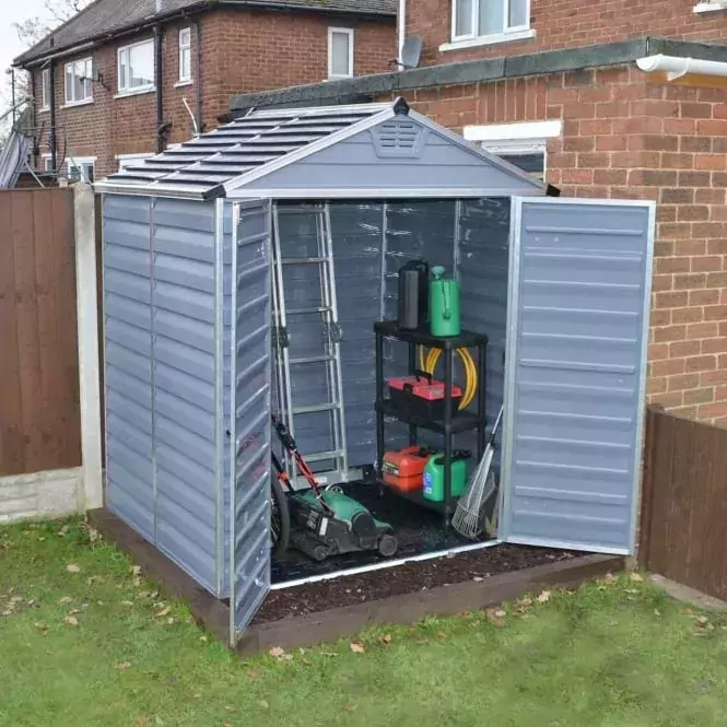 Update your garden with the addition of the Palram 6×5 Canopia Skylight Plastic Apex Shed – Dark Grey , a stylish heavy duty addition that allows you to safely store a range of equipment including lawn tools, sports equipment, patio furniture and more.