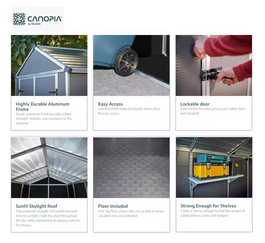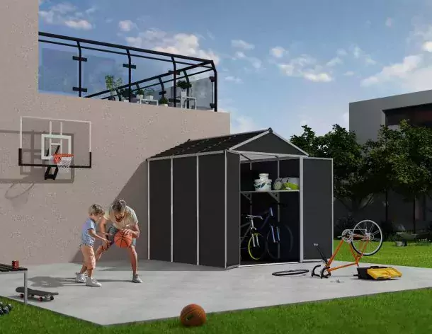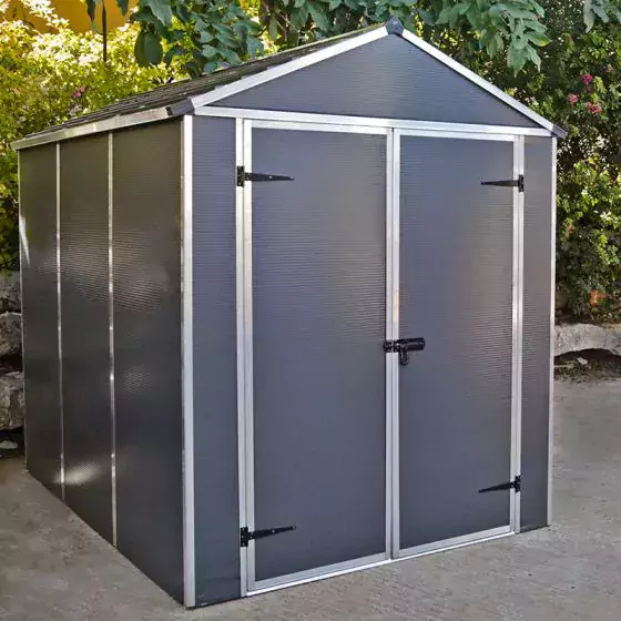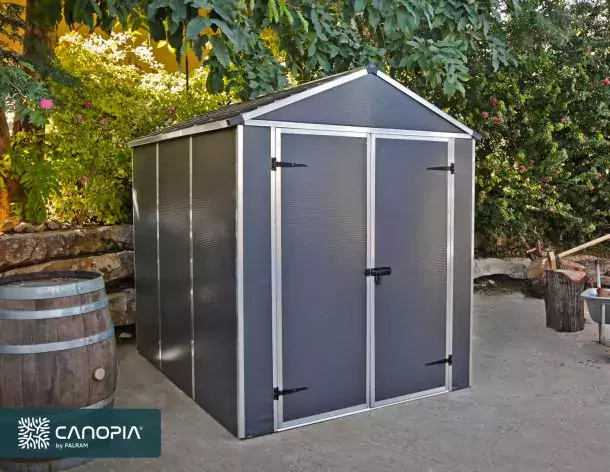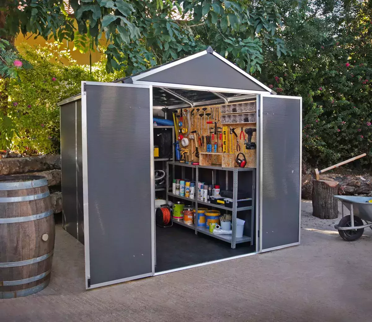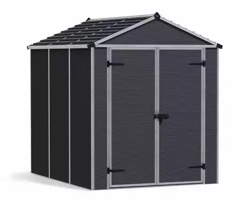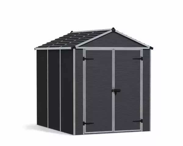 The Palram 6×8 Canopia Rubicon Double Door Plastic Shed – Dark Grey provides unbeatable weatherproof protection for your tools and equipment.