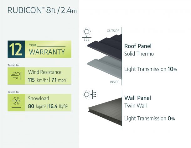 10mm multi-wall polycarbonate panels on a robust metal frame