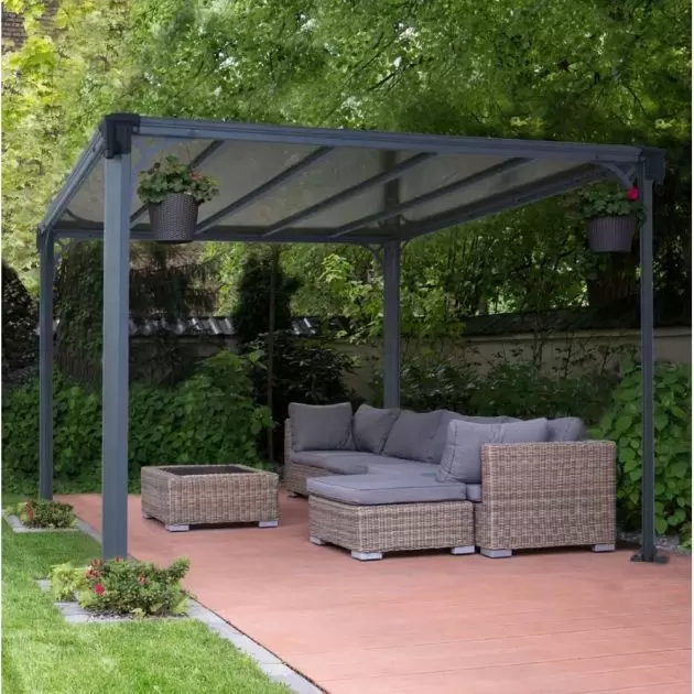 The sturdy construction and shatter-resistant Twin-wall polycarbonate panels will ensure many years of use. The Milano Gazebo is ideal for hosting dinner parties and entertaining friends and family, and it is sure to become the focal point of your garden. Complete with integrated gutters, the structure includes a 10 year warranty against manufacturing defects.