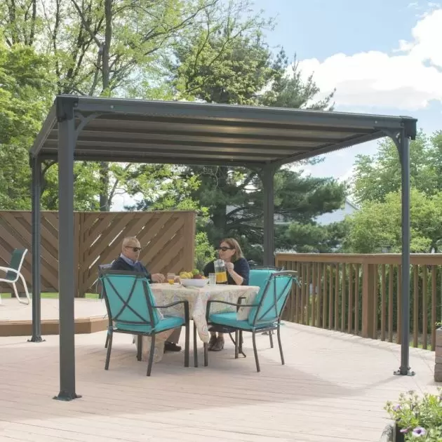 Utilize it as a cool retreat from the hot sunny days of summer, a hot tub, smoking shelter or a private getaway. The Milano gazebo structure is sturdy, durable and provides protection from the harsh weather as well as from the sun’s harmful impact for many years of enjoyment. This gazebo is ideal for hosting a small dinner party or simply to enjoy the fresh air and view of your garden year-round.