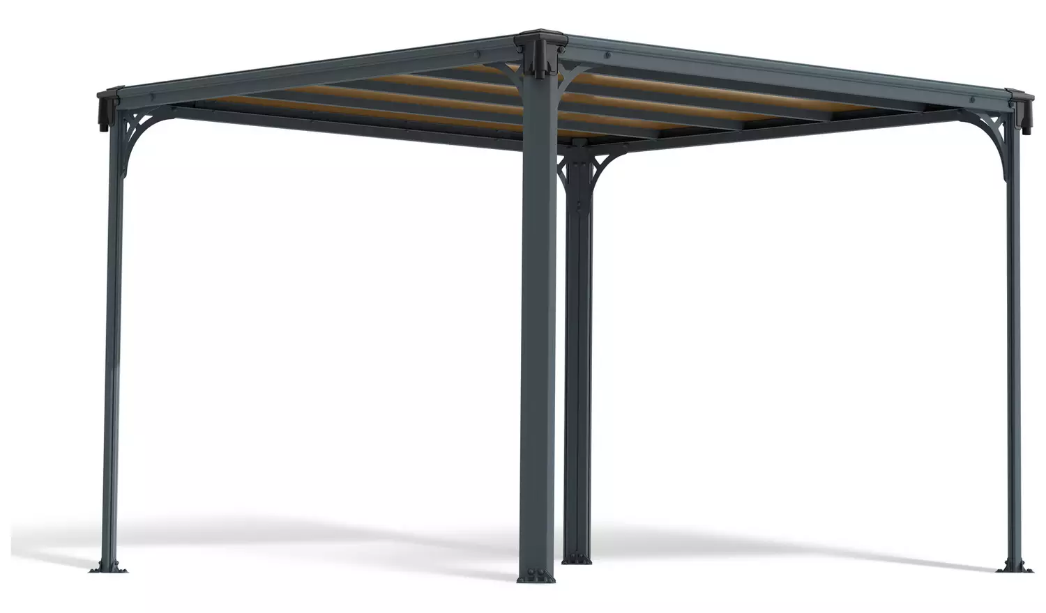The stylish Palram -Canopia 10′ x 10′ Milano 3000 Metal Gazebo – Grey  is a flat-top gazebo which will provide a quality lounging area for your patio or garden. Creating a cool retreat from the sun in the summer or a versatile canopy for a hot tub, this gazebo will provide shelter from bad winter weather and can therefore be used all year round.