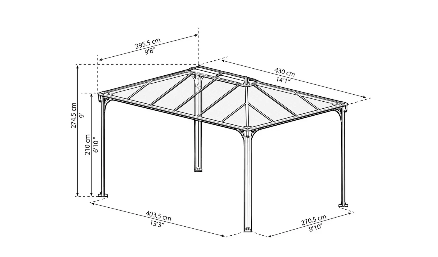 All Palram Gazebos are advised to be Installed on a hard standing surface base area. Anchoring and foot-pads included Secure the carport to the surface of your choosing.
