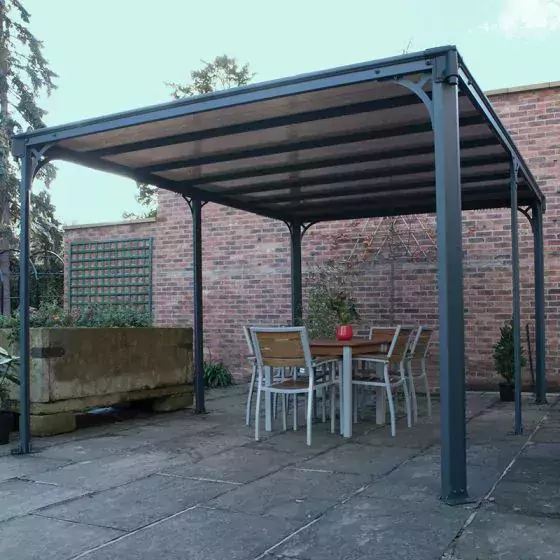 The sturdy construction and shatter-resistant Twin-wall polycarbonate panels will ensure many years of use. The Milano Gazebo is ideal for hosting dinner parties and entertaining friends and family, and it is sure to become the focal point of your garden. Complete with integrated gutters, the structure includes a 10 year warranty against manufacturing defects.