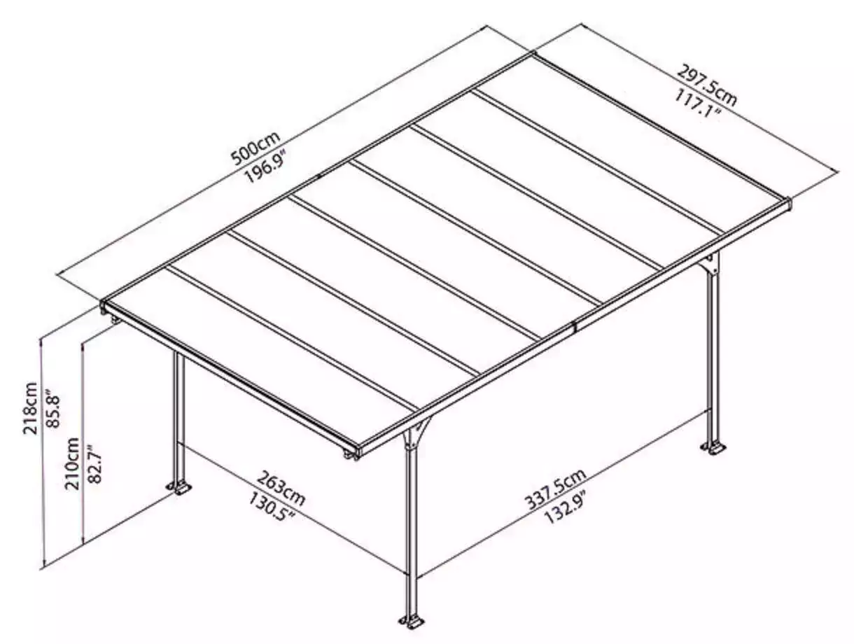 The Verona 5000 carport provides you with a clean lined, modern cover for your driveway or alternately as a gazebo or seating area within your garden space or backyard. If you’re looking for a stylish, yet practical structure to provide shade and protect for your vehicle, garden furniture or even an outdoor hot tub then the Verona is the solution for you. This sleek do-it-yourself, maintenance free carport is made to be as efficient as possible with the sliding panel system. The Verona 5000 provides you family with an elegant and sturdy shelter to be utilized year-round.