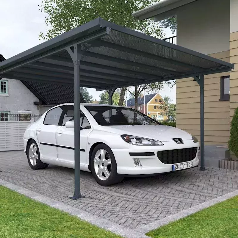 Made with highly resistant, safe polycarbonate panelling, this carport is a multi-purpose structure designed for superior protection of your car or other vehicles all year round. The panels transmit natural sunlight while providing 100% UV ray protection and the resilient polycarbonate is made to resist fracturing, discolouration and becoming brittle over time. Great for years of outdoor use.