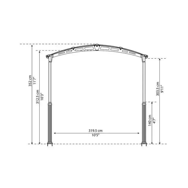 The aluminium legs can be adjusted to a maximum height of 11’7 (352cm), so the carport can easily accommodate taller vehicles.
