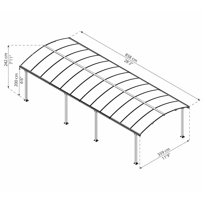 The perfect addition to your outdoor area to cover your vehicle as it’s parked, this Palram – Canopia 12′ x 28′ Aluminium Curved Carport Arcadia 8500 Grey is a great, long-lasting building for extra protection.