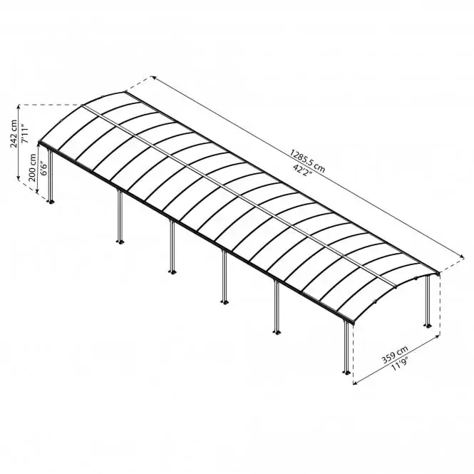 Palram – Canopia 12′ x 42′ Aluminium Curved Carport Arcadia 12700 Grey