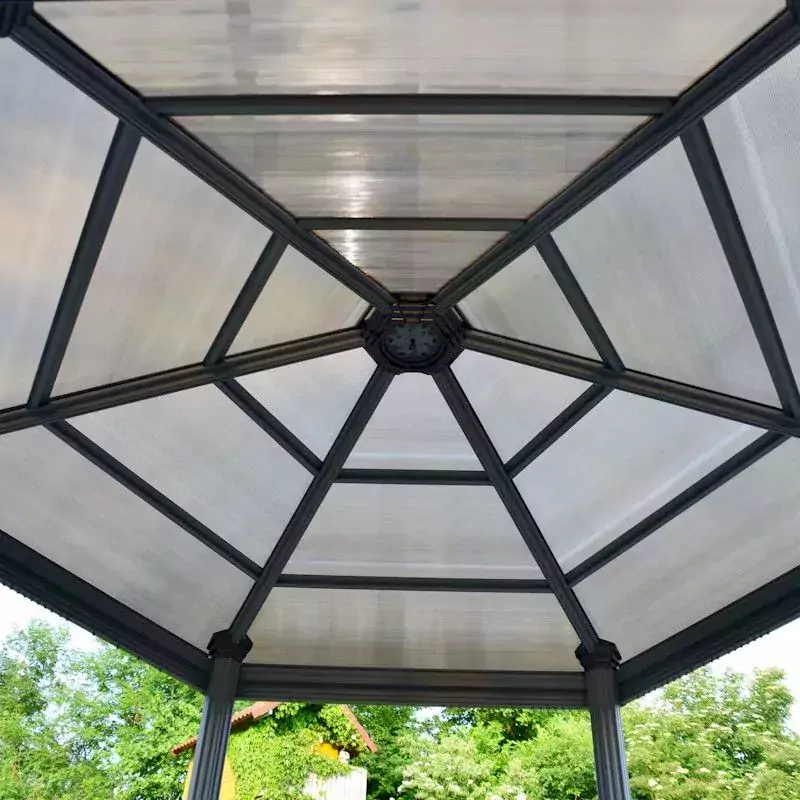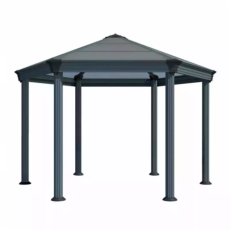 The Palram – Canopia 12’x 14′ Roma Hexagonal Metal Garden Gazebo provides you with an ideal outdoor lounging area for your garden or backyard. It is engineered to meet strong winds and heavy snow load.