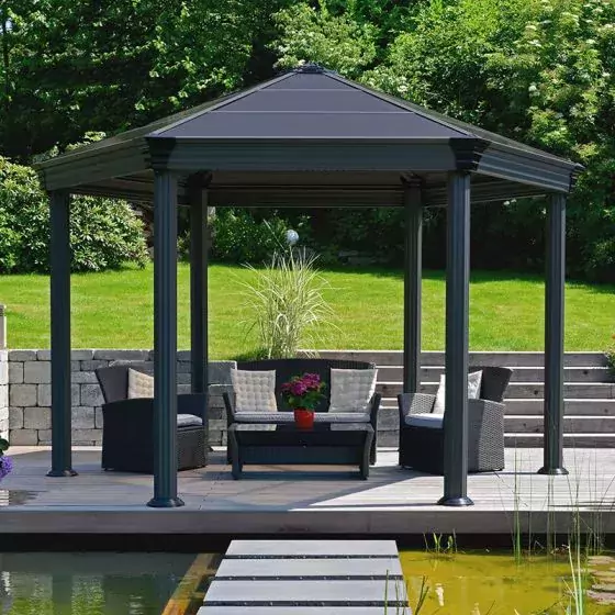 Expertly constructed from 6mm bronze polycarbonate roof panels, this hardtop gazebo is near unbreakable and completely UV protected, so will maintain its stunning appearance for many years to come. It also blocks harmful UV rays, providing you with a safe environment in which to relax in your garden.