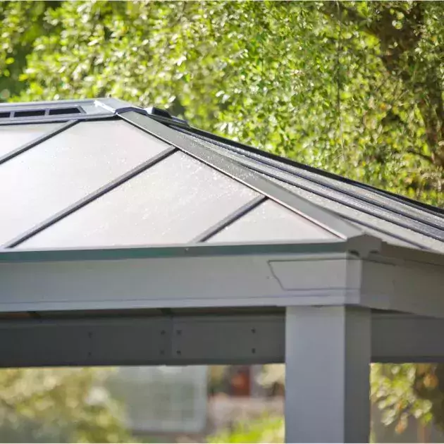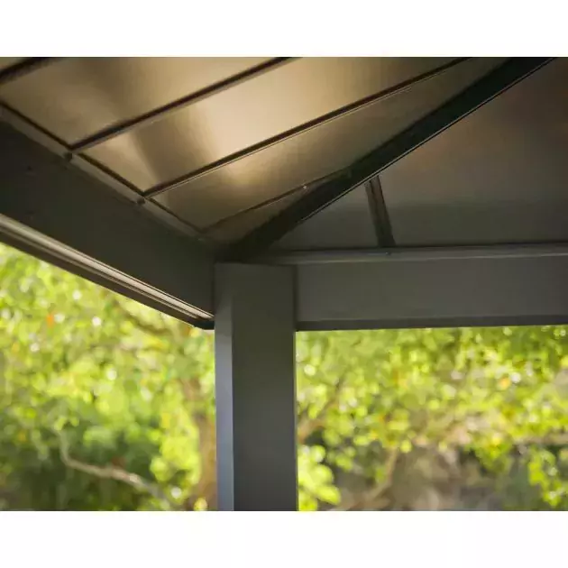 Offering a solid and attractive shelter for barbeque and poolside situations. Designed for durability as well as elegance, this unit combines high quality aluminium extrusion and steel componentry powder coated in Anthracite Grey with virtually unbreakable grey opaque 6.00mm Twin-wall polycarbonate glazing which is UV-stabilised. The Dallas garden living space offers a sense of privacy and provides a shaded area to be utilized year-round.
