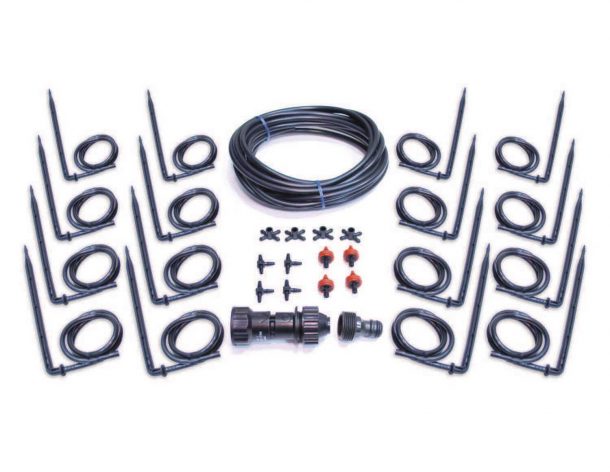 Includes: 10m drip lines, 16 droppers, 3/4″ adapter, 4 T connector 4/6 mm