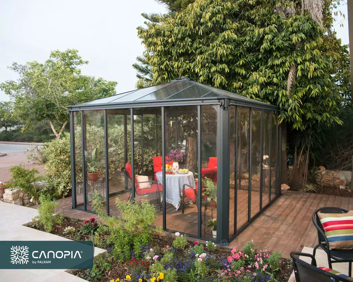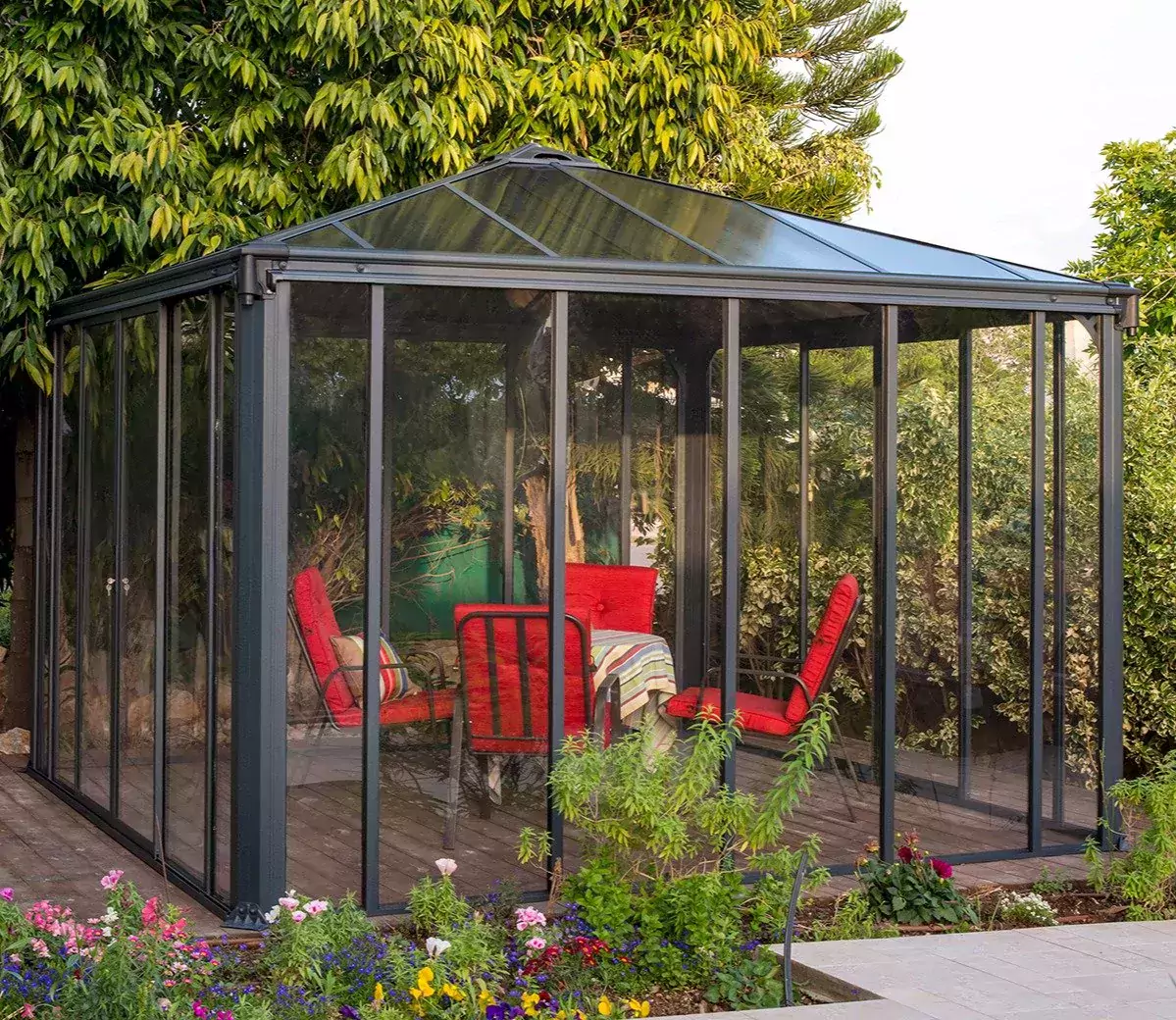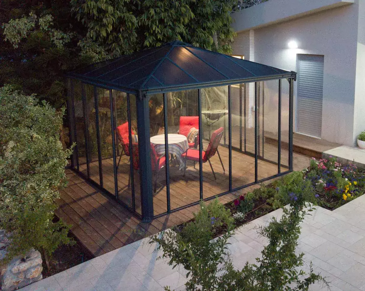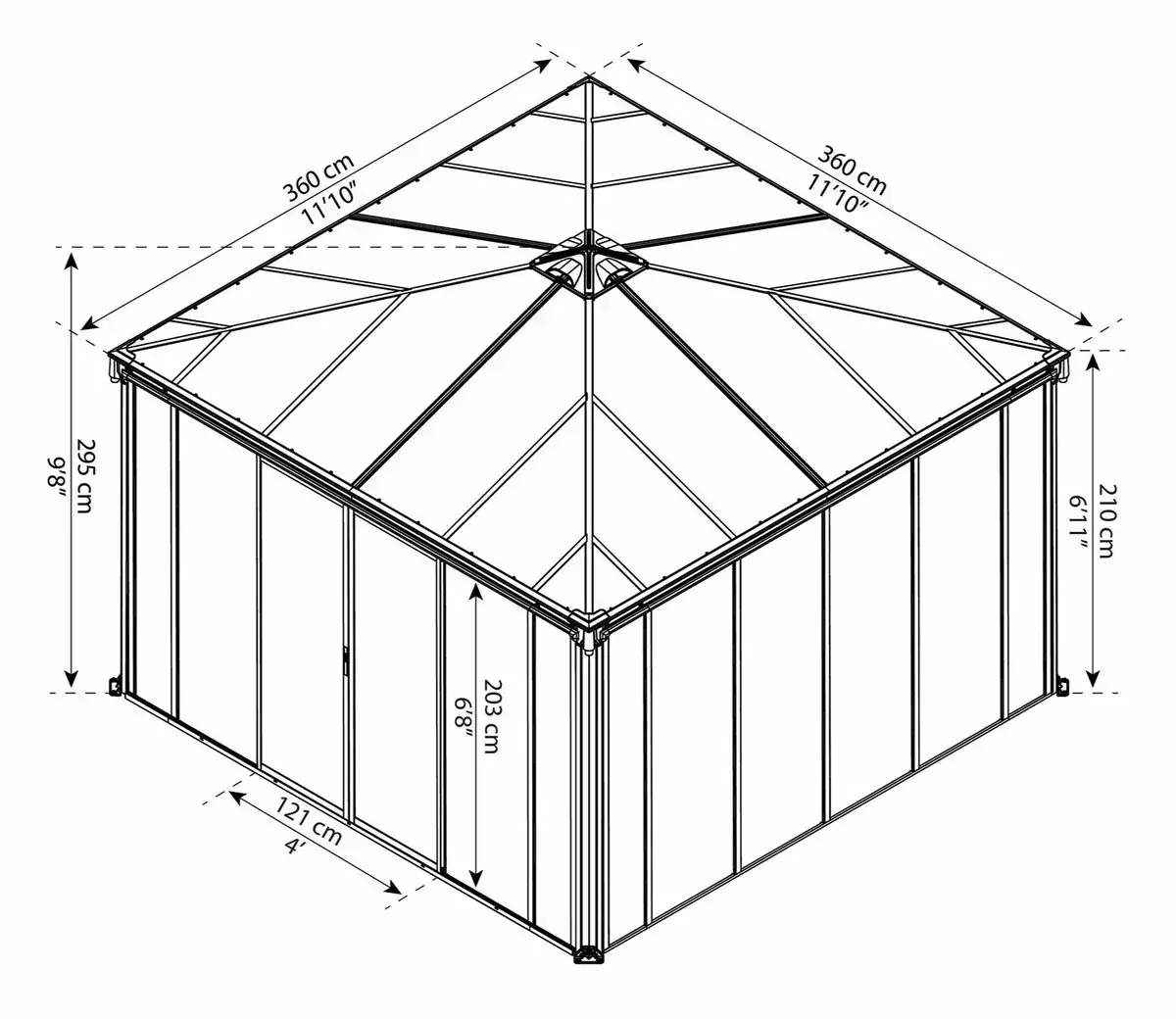 Embrace the outdoors from the comfort of indoors with the Palram – Ledro 12’x 12′ 3600 Metal Enclosed Garden Gazebo.