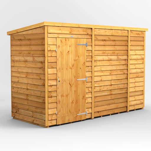 Made with high grade premium quality timber throughout including roof and floor (no chipboard or OSB). the Power 10’x4′ Overlap Timber Pent Shed uses 10mm extra thick rustic looking overlap cladding.