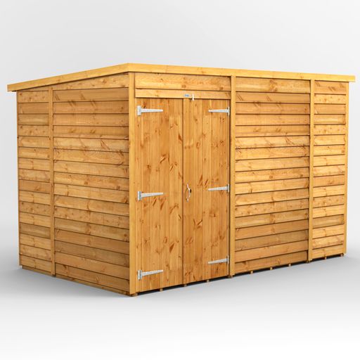 Made with high grade premium quality timber throughout including roof and floor (no chipboard or OSB). the Power 10’x6′ Overlap Timber Pent Shed uses 10mm extra thick rustic looking overlap cladding.