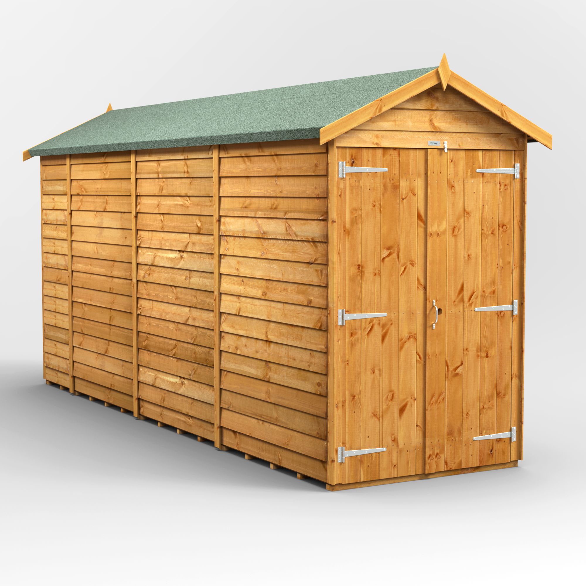 Made with high grade premium quality timber throughout including roof and floor (no chipboard or OSB). the Power 14’x4′ Overlap Timber Apex Shed uses 10mm extra thick rustic looking overlap cladding.