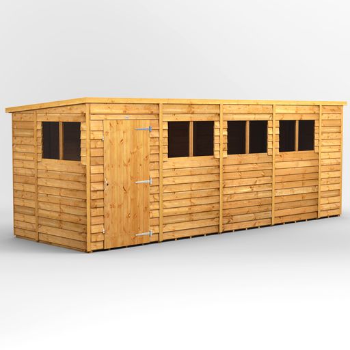 Made with high grade premium quality timber throughout including roof and floor (no chipboard or OSB). the Power 18’x6′ Overlap Timber Pent Shed uses 10mm extra thick rustic looking overlap cladding.