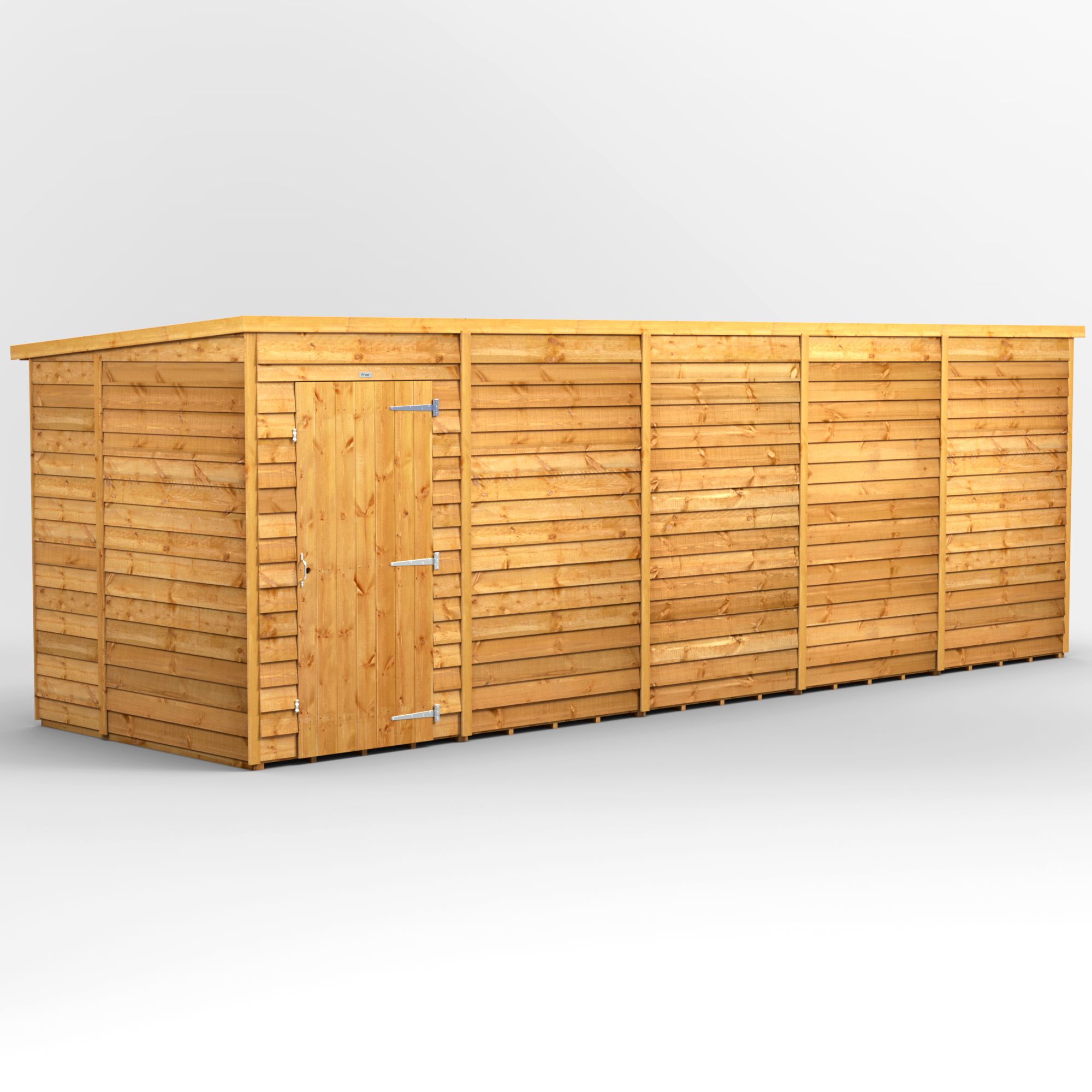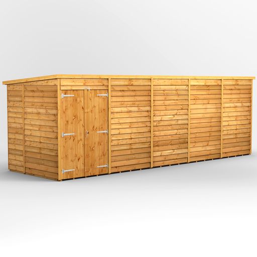 Made with high grade premium quality timber throughout including roof and floor (no chipboard or OSB). the Power 20’x6′ Overlap Timber Pent Shed uses 10mm extra thick rustic looking overlap cladding.