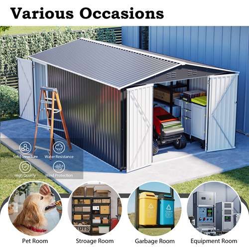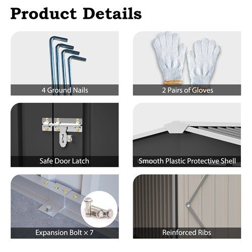 Built as a heavy-duty metal shed with galvanized steel panels, this Metal Garden Shed provides excellent strength, rust resistance, and long-term reliability.