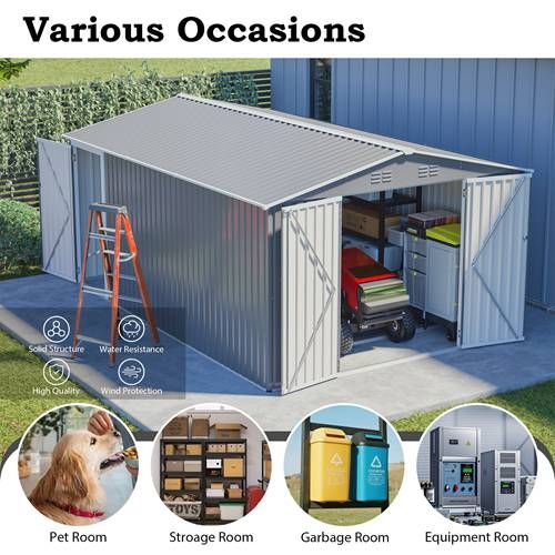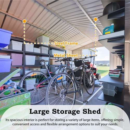 Built as a heavy-duty metal shed with galvanized steel panels, this Metal Garden Shed provides excellent strength, rust resistance, and long-term reliability.
