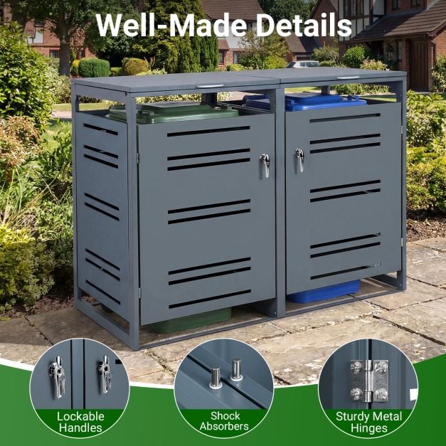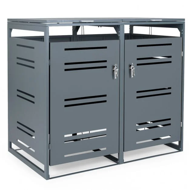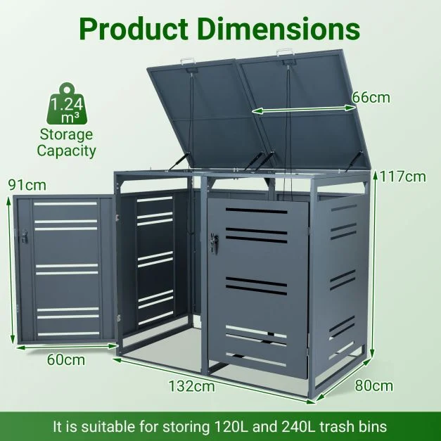 Spacious Dual-Bin Capacity: Designed as a metal enclosure for 2 wheelie bins, this unit neatly conceals household or commercial bins while supporting organized waste sorting with a separated layout. Measuring 132 x 80 x 117 cm, it accommodates 120 L and 240 L wheelie bins.