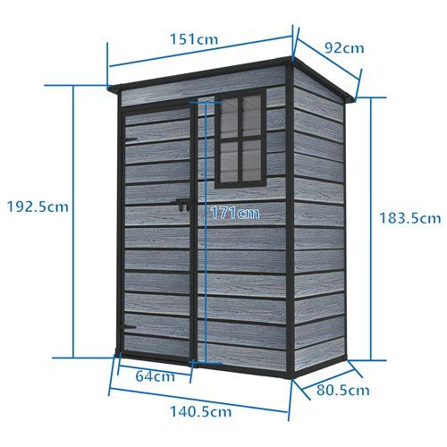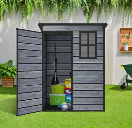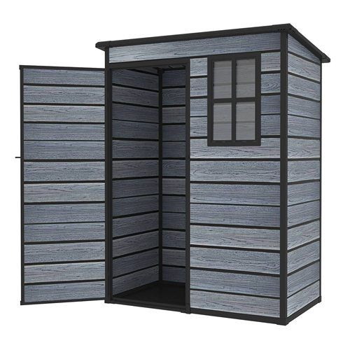 Craft from High-Density Polyethylene (HDPE) the Pro-Tect 5’x3′ Plastic Pent Garden Shed with Integral Floor – Wood Grain is designed to protect your valuables with a weather-resistant enclosure, shielding your items from rain, snow, and the elements?ideal for garden outdoor storage.