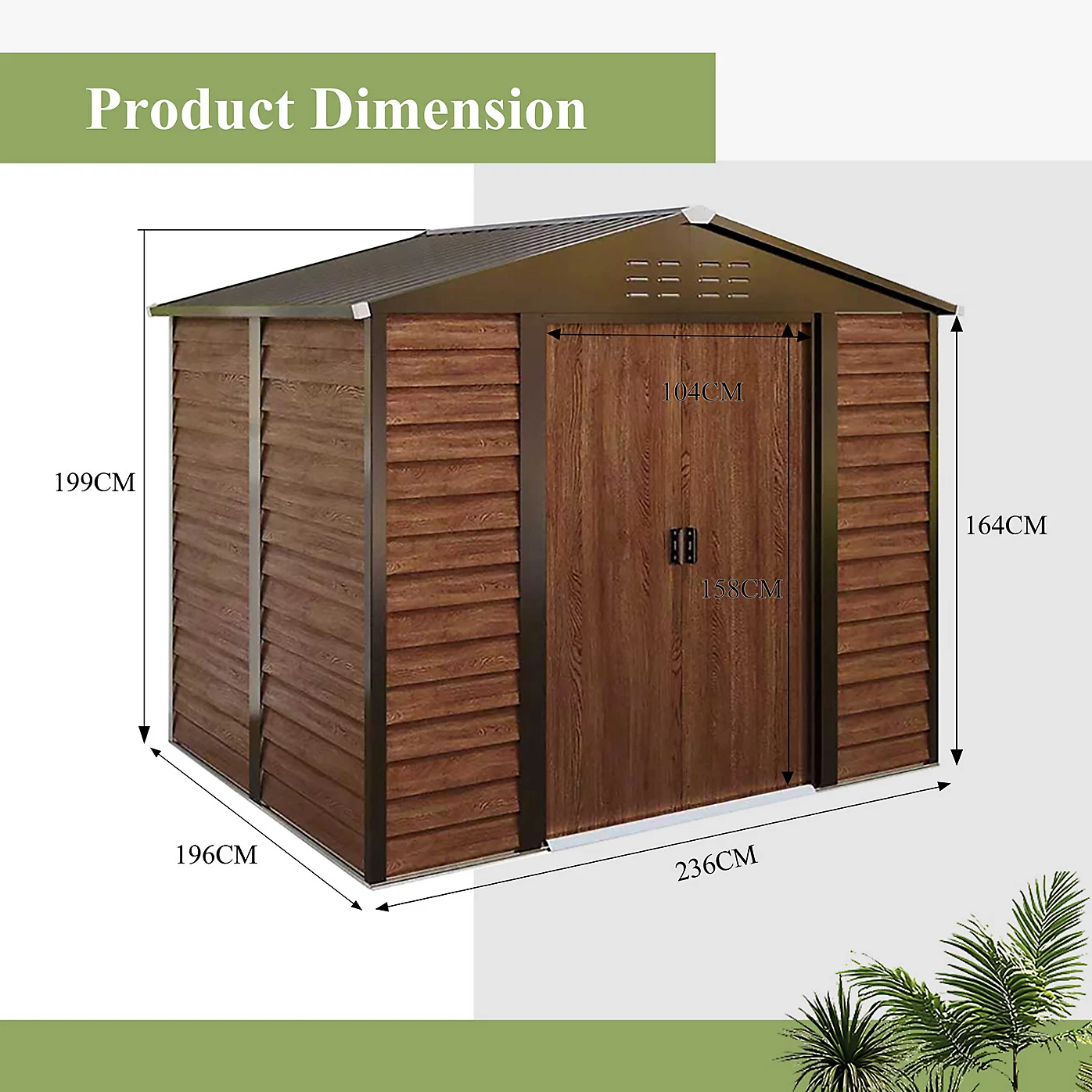 Large Storage Capacity: This garden storage shed is 8x6ft, large internal storage space can accommodate a variety of items, it’s an ideal storage shed for lawn mower, grill, bicycles, garbage bin, garden furniture and garden tools.