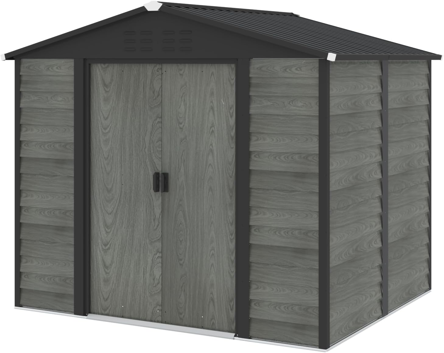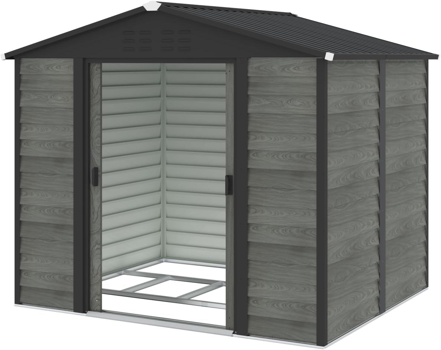 Pro-Tect 8’x6′ Woodlook Metal Apex Shed with Foundation Grid – Grey
