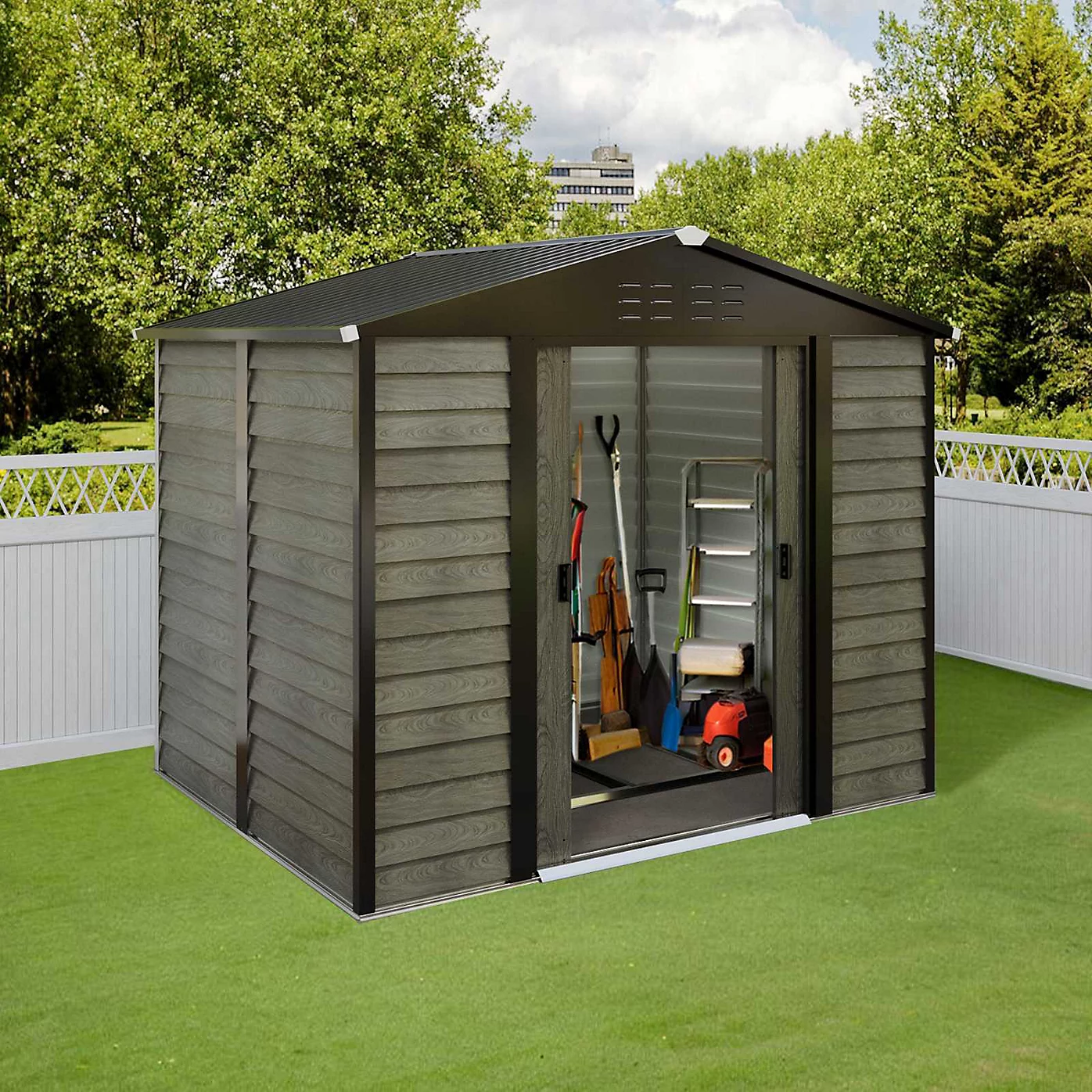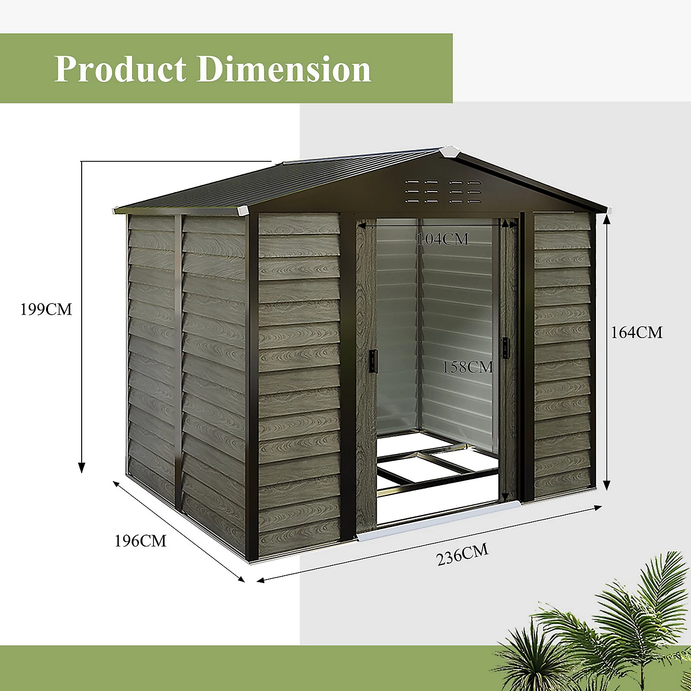 Large Storage Capacity: This garden storage shed is 8x6ft, large internal storage space can accommodate a variety of items, it’s an ideal storage shed for lawn mower, grill, bicycles, garbage bin, garden furniture and garden tools.
